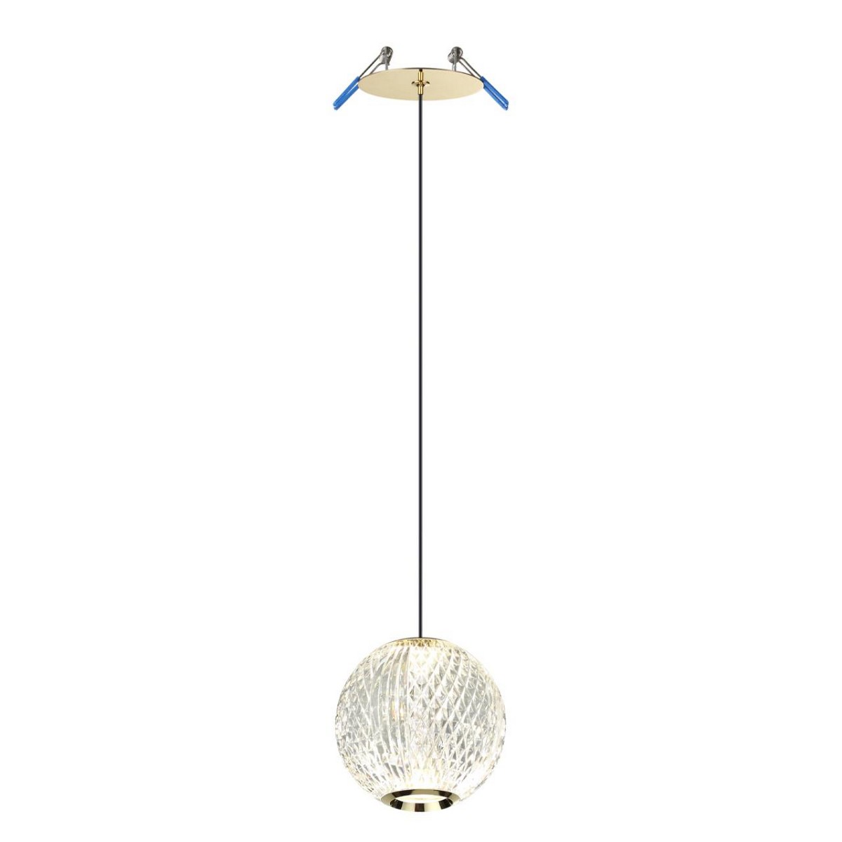 Декоративные элементы в виде акриловых шариков, имитирующих хрусталь, добавляют роскошности и позволяют свету мягко распределяться, создавая уютную атмосферу. Подвес украшен золотистыми элементами, что придает особенный шарм и подчеркивает высокий стиль интерьера. Модель предлагает гибкость монтажа, позволяя выбрать между накладным и встроенным способами установки.