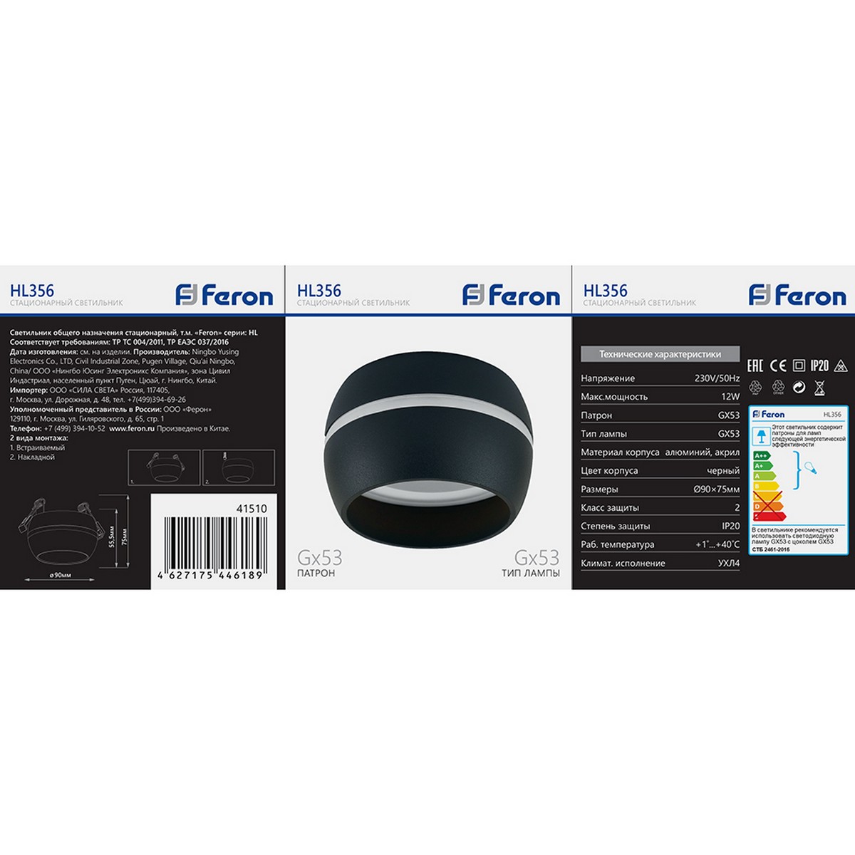 Светильник спот потолочный Feron HL356 12W GX53 черный 41510 по цене 456 руб. с фотографией и техническими характеристиками. Для покупки товара нажмите кнопку "Купить" и перейдите в корзину или позвоните по телефону 8 (495) 585 32 60 или 8 (800) 222 23 53.