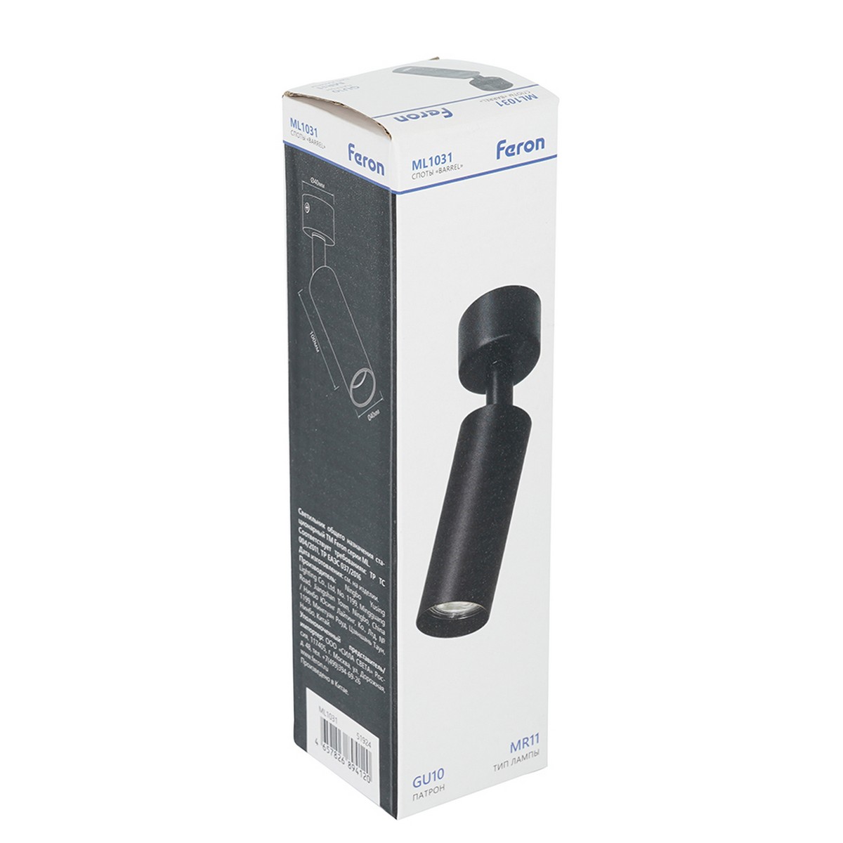 Светильник Feron ML1031 настенно-потолочный под лампу GU10 черный 51924 по цене 484 руб. с фотографией и техническими характеристиками. Для покупки товара нажмите кнопку "Купить" и перейдите в корзину или позвоните по телефону 8 (495) 585 32 60 или 8 (800) 222 23 53.