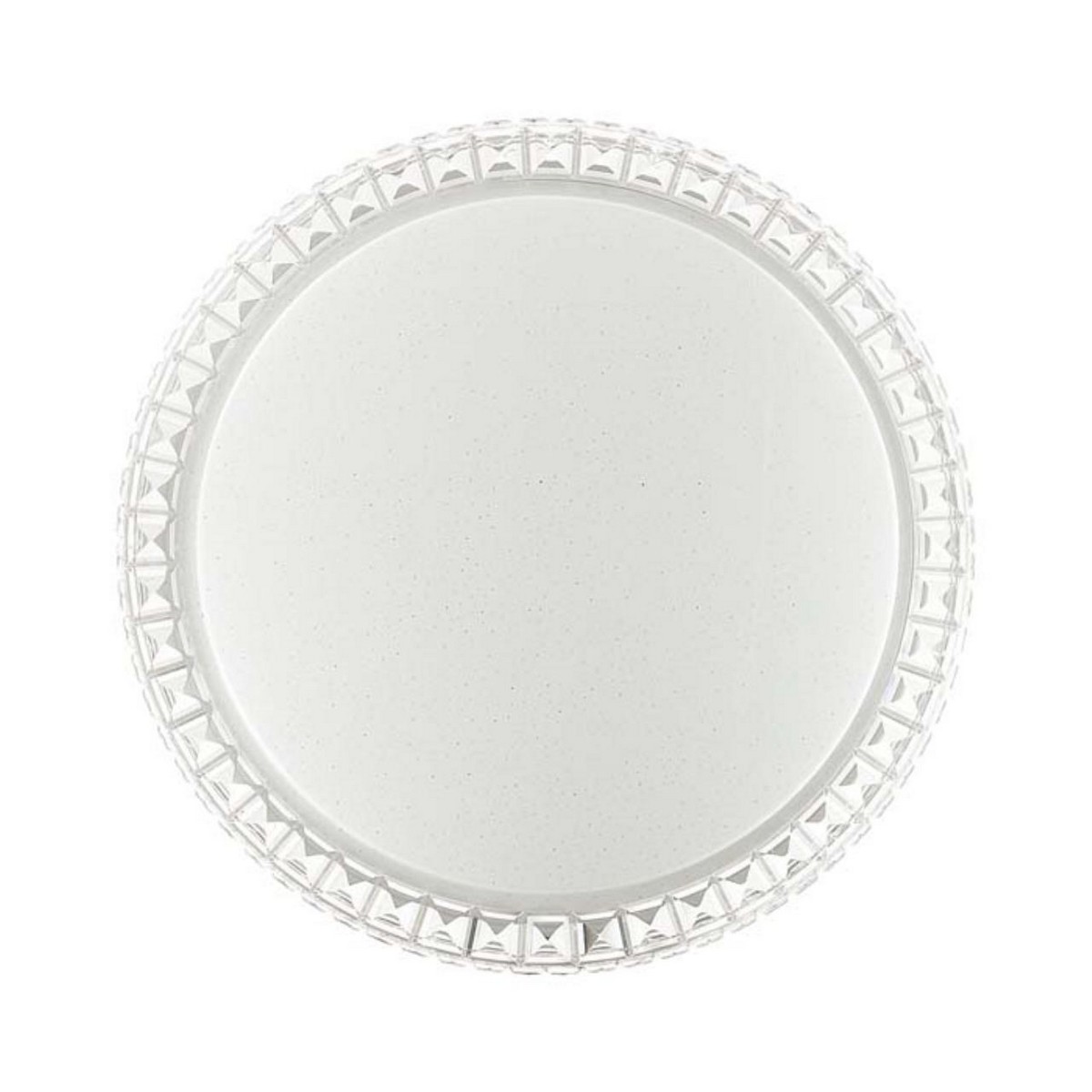 Светильник 2036/EL линии BRISA состоит из металлического основания (базы) и пластикового рассеивателя. Материал рассеивателя - высококачественный акрил белого цвета с глянцевой поверхностью, обеспечивающий светильнику равномерное рассеивание и хорошее светопропускание. Форма плафона: круглая, декорирована рисунком в виде прозрачных точек и рельефным ободом, которые придают включенному светильнику красивый эффект "звездного мерцания" и переливания. Степень защиты IP43 позволяет использовать светильник в определенных зонах влажных помещений. В комплект входит заменяемый LED модуль с линзами, мощностью 72Вт, которая соответствует лампе накаливания 730Вт. А также пульт ДУ, с помощью которого осуществляется плавное изменение цветовой температуры 3000-6300К, изменение яркости, переход в режим переключения теплого/белого/холодного/ночного света. Светильник имеет функцию "память".