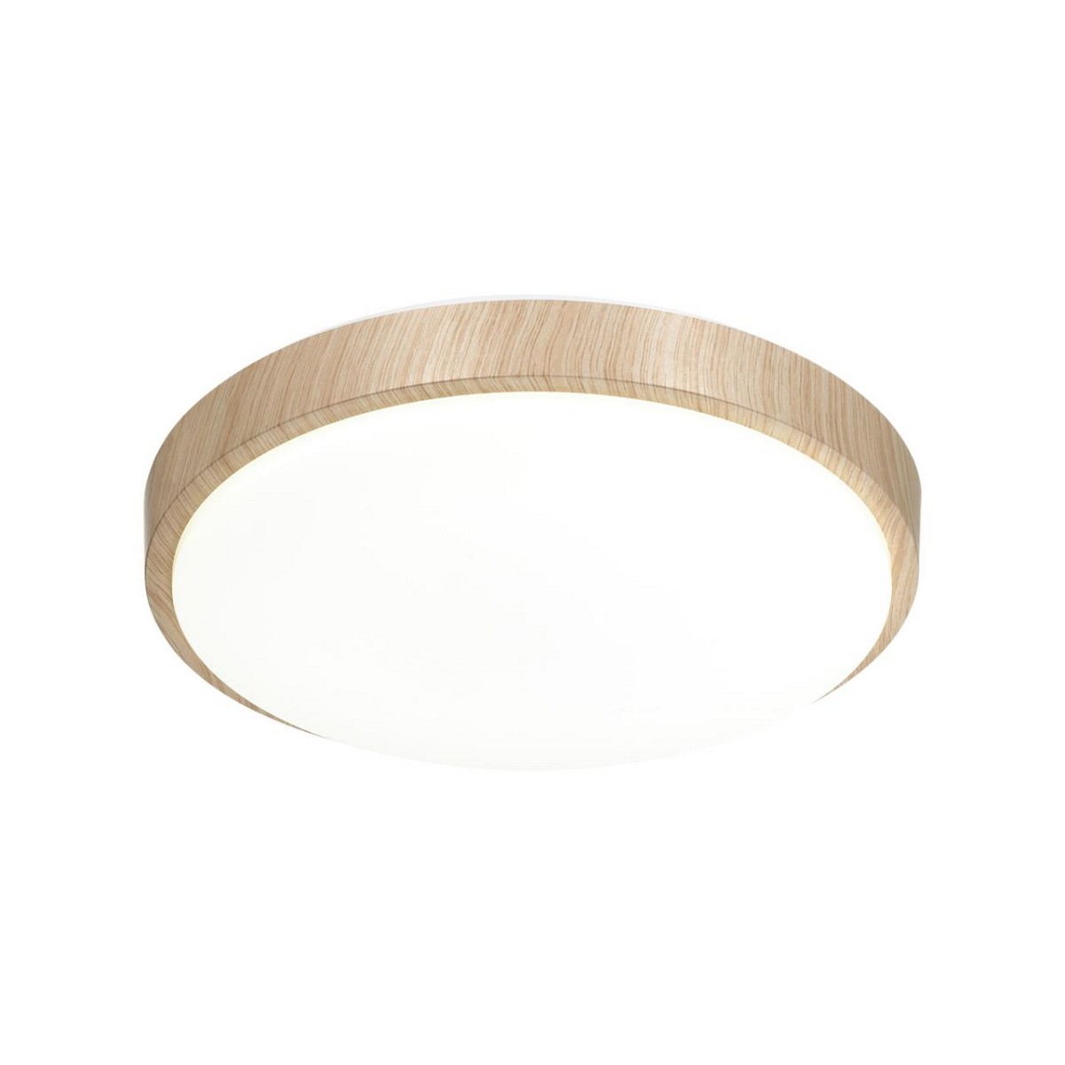 Светильник 7607/СL линии LOSTA состоит из металлического основания (базы) и пластикового рассеивателя. Материал рассеивателя - высококачественный пластик марки PMMA 2.0 белого цвета с матовой поверхностью, без текстуры. Пластик обеспечивает светильнику равномерное рассеивание и хорошее светопропускание. Форма плафона: круглая, декорирована ободом из пластика бежевого цвета "под дерево". Степень защиты IP43 позволяет использовать светильник в определенных зонах влажных помещений. Степень защиты IP43 позволяет использовать светильник в определенных зонах влажных помещений. В комплект входит заменяемый LED модуль с линзами, мощностью 30Вт, которая соответствует лампе накаливания 270Вт. Источник света имеет комфортную цветовую температуру 4000К (белый свет).