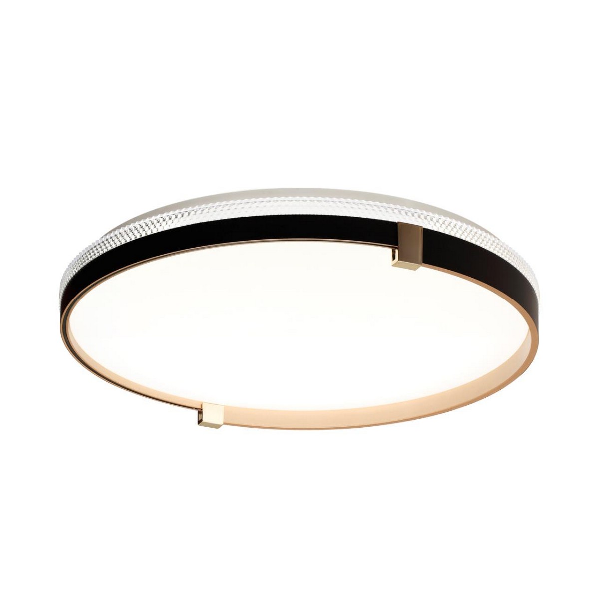 Светильник 7647/DL линии OLIDI BLACK состоит из металлического основания (базы) и пластикового рассеивателя. Материал рассеивателя - высококачественный пластик марки PMMA 2.0 белого цвета с матовой поверхностью, без текстуры. Пластик обеспечивает светильнику равномерное рассеивание и хорошее светопропускание. Форма плафона: круглая, декорирована ободом из пластика черного и золотистого цветов с прозрачной вставкой под хрусталь. Обод украшен металлическими клипсами, цвет золото. Степень защиты IP43 позволяет использовать светильник в определенных зонах влажных помещений. В комплект входит заменяемый LED модуль с линзами, мощностью 48Вт, которая соответствует лампе накаливания 460Вт. Источник света имеет комфортную цветовую температуру 4000К (белый свет).
