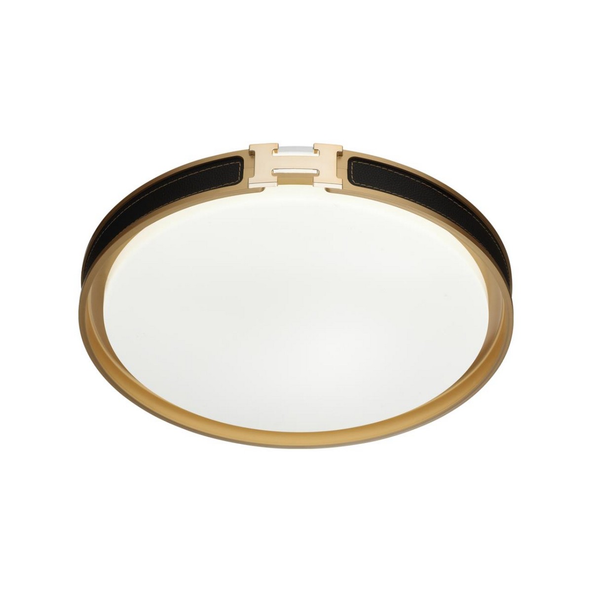 Светильник 7667/DL линии FAVEMO BLACK состоит из металлического основания (базы) и пластикового рассеивателя. Материал рассеивателя - высококачественный пластик марки PMMA 2.0 белого цвета с матовой поверхностью. Пластик обеспечивает светильнику равномерное рассеивание и хорошее светопропускание. Форма плафона: круглая, декорирована ободом из искусственной кожи черного цвета. Обод украшен декоративной вставкой в виде пряжки ремня из пластика, цвет золото. Степень защиты IP43 позволяет использовать светильник в определенных зонах влажных помещений. В комплект входит заменяемый LED модуль с линзами, мощностью 48Вт, которая соответствует лампе накаливания 460Вт. Источник света имеет комфортную цветовую температуру 4000К (белый свет).