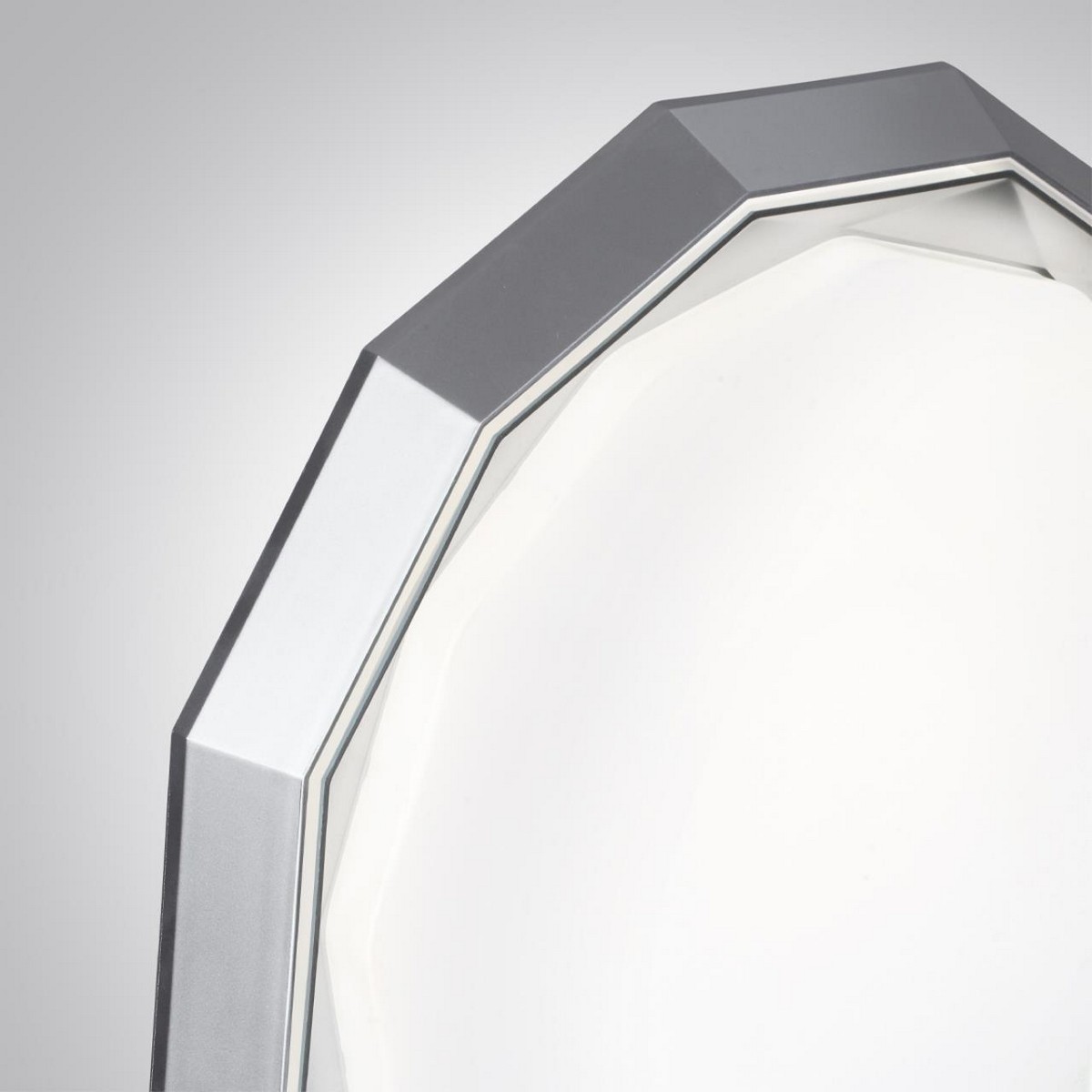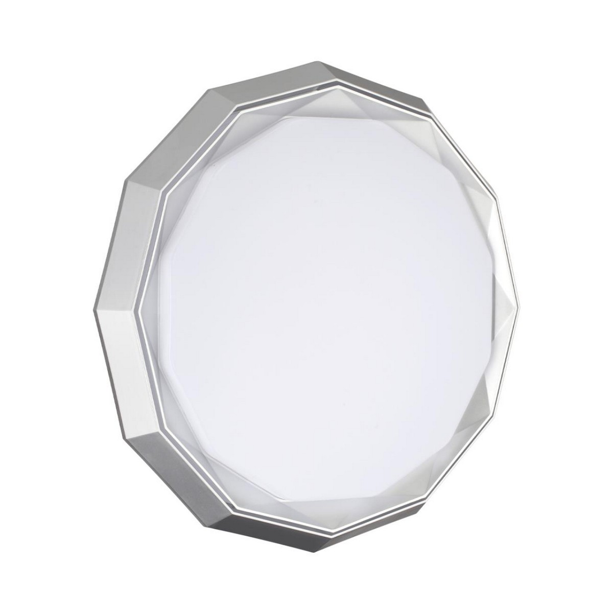 Светильник 7671/DL линии VAXIN состоит из металлического основания (базы) и пластикового рассеивателя. Материал рассеивателя - высококачественный пластик марки PMMA 2.0 белого цвета с матовой поверхностью. Пластик обеспечивает светильнику равномерное рассеивание и хорошее светопропускание. Форма плафона: круглая, декорирована ободом из пластика, рельефной структуры, цвет хром. Степень защиты IP43 позволяет использовать светильник в определенных зонах влажных помещений. В комплект входит заменяемый LED модуль с линзами, мощностью 48Вт, которая соответствует лампе накаливания 440Вт. А также пульт ДУ (с креплением на стену), с помощью которого осуществляется плавное изменение цветовой температуры 3000-6000К, изменение яркости, переход в режим переключения теплого/белого/холодного/ночного света. Светильник имеет функцию "память".