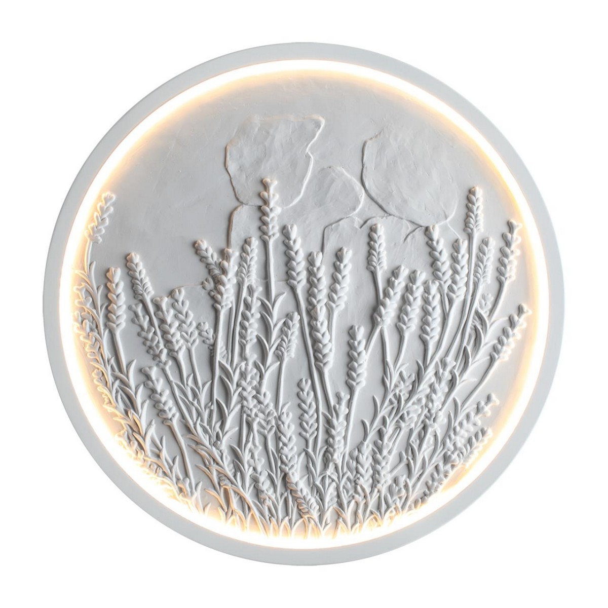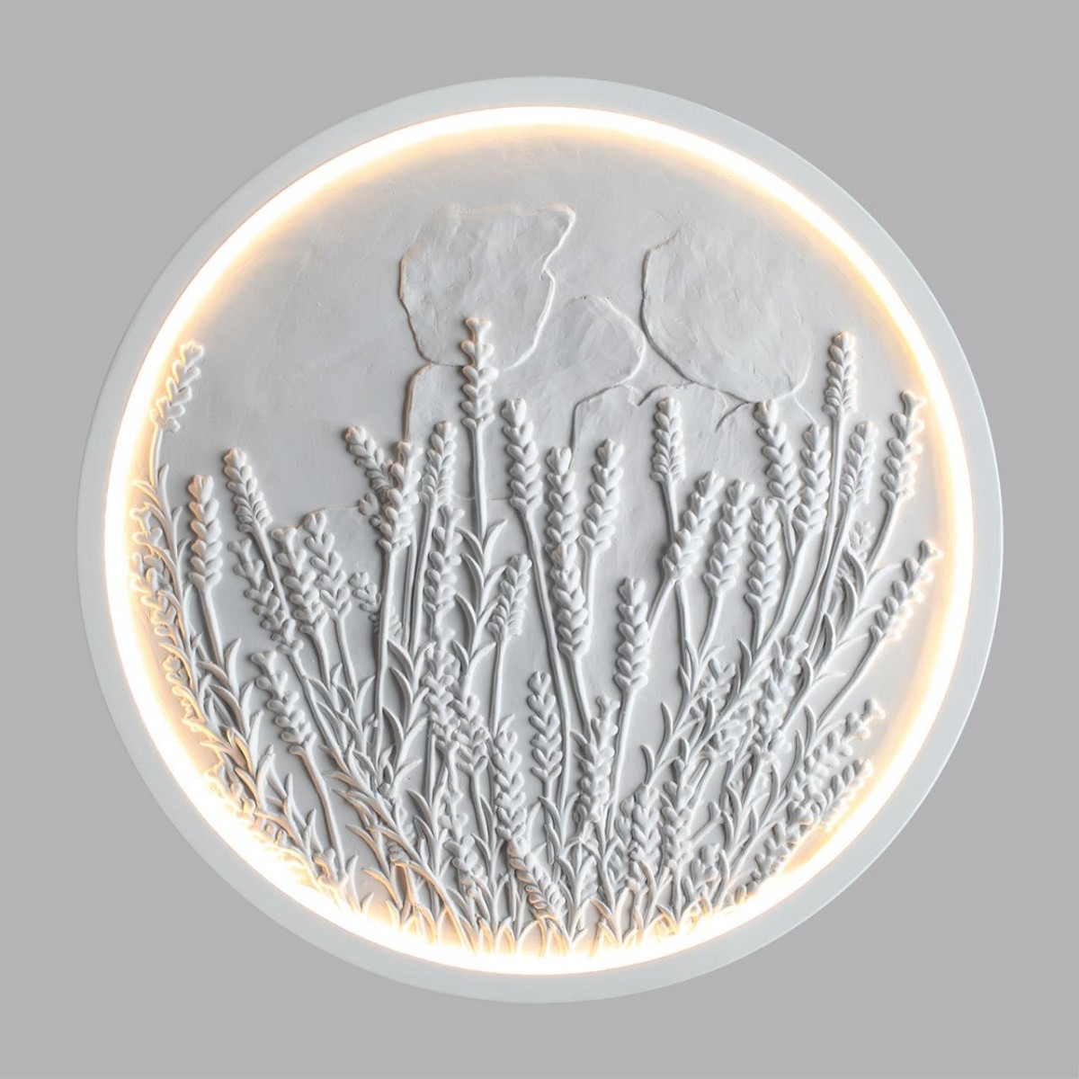 Lavanda — светильник диаметром 400 мм, который был вдохновлен популярными в интерьерах ботаническими барельефами. Мягкая подсветка подчеркивает каждую травинку, создавая живую и тактильную атмосферу.