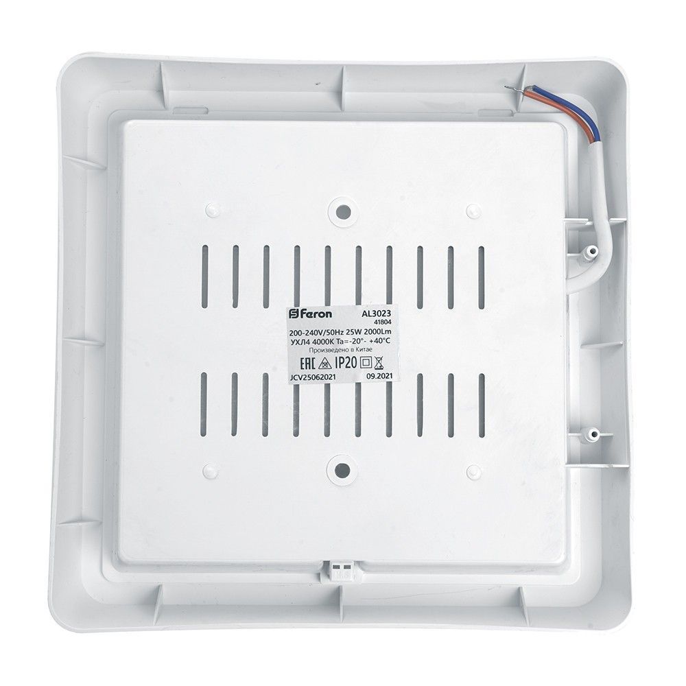 Светильник накладной светодиодный FERON AL3021 – идеальное решение для освещения прихожей, коридора или жилого пространства. Модель имеет квадратную форму и выполнена в стильном белом цвете, что позволяет ей органично вписаться в любой интерьер. Светильник оснащен мощными встроенными LED-лампами мощностью 25W, обеспечивающими яркость до 2000 Lm и холодное белое свечение (6500К), создавая комфортное освещение для повседневного использования.