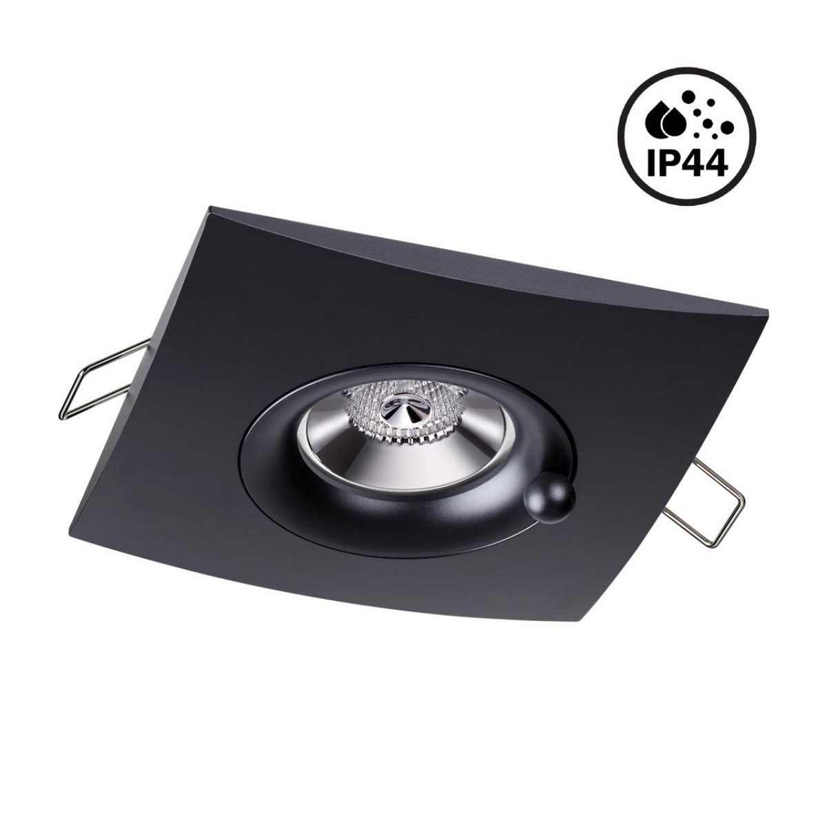 Светильник встраиваемый NOVOTECH WATER 370796 выполнен в черном цвете, с влагозащитой IP44, что позволяет его использовать в ванных комнатах и других влажных помещениях. Его форма - квадратная, дополнит любой интерьер. Мощностью 50 Вт, для ламп типа GU10. Обратите внимание, лампа в комплект не входит. Напряжение питания - 220V.