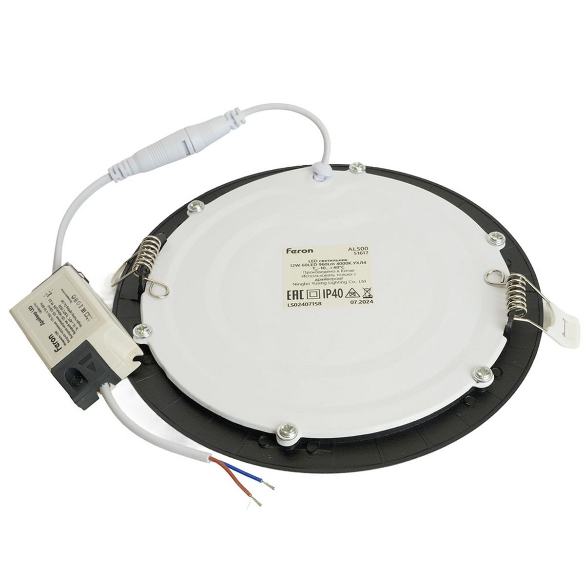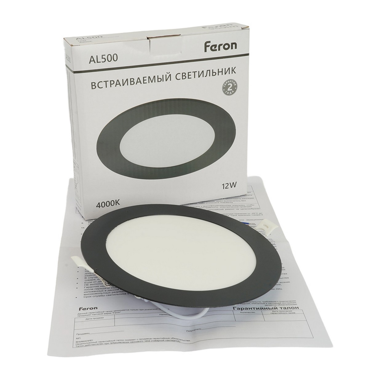 продолжительного срока службы. Светильник встраиваемый светодиодный, ультратонкий (ДВО) FERON AL500, 12W 4000К (белый), 175-265V, 960Lm, IP40, угол рассеивания 120°, цвет черный, корпус алюминий, рассеиватель матовый акриловый полимер, 170*170*18 мм, монтажн.отв. 155*155 мм.