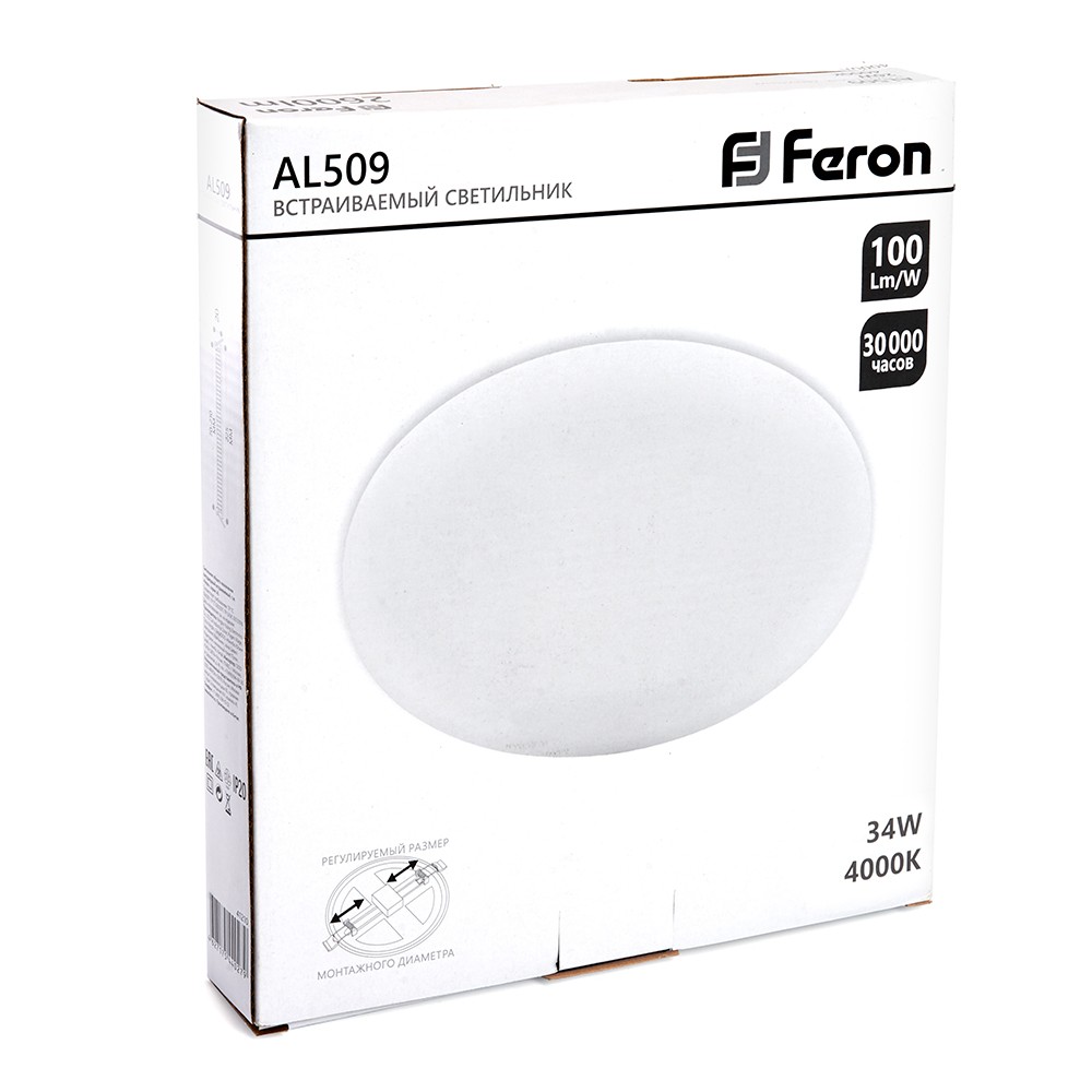 Светодиодный светильник Feron AL509 с регулируемым диаметром (до 170мм) 34W 4000K 41567 по цене 1 024 руб. с фотографией и техническими характеристиками. Для покупки товара нажмите кнопку "Купить" и перейдите в корзину или позвоните по телефону 8 (495) 585 32 60 или 8 (800) 222 23 53.