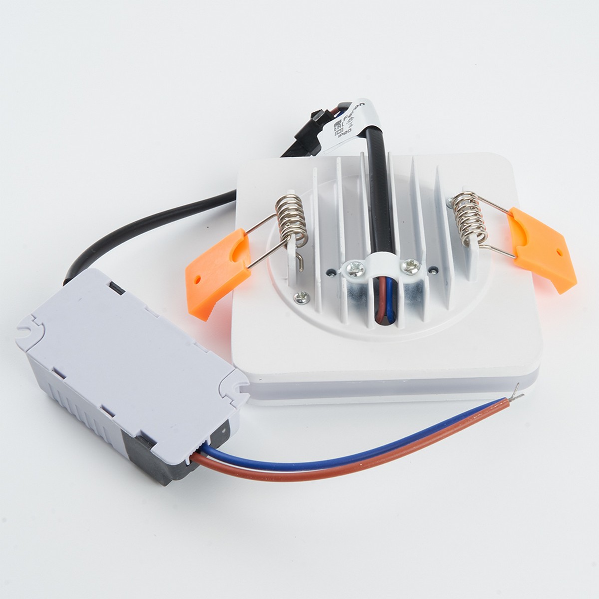 Компактные размеры светильника (82×82×30 мм) позволяют аккуратно вписаться в интерьер, сохраняя при этом максимальный световой поток. Материал изготовления - качественный алюминий с матовым акриловым рассеивателем, который обеспечивает равномерное распределение света, предотвращая дискомфортные блики и тени.