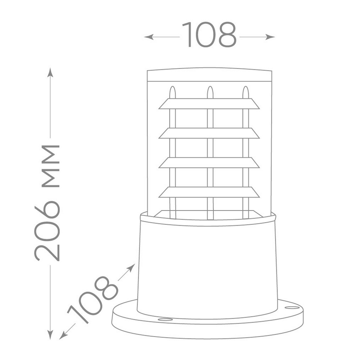 Модель оснащена стандартным цоколем E27, который позволяет использовать широкий спектр ламп, включая энергосберегающие. Класс защиты IP54 гарантирует надежную работу в условиях уличной среды, защищая от пыли и брызг воды. Размеры светильника (108*108*206мм) делают его компактным, но при этом достаточно заметным элементом ландшафтного дизайна.
