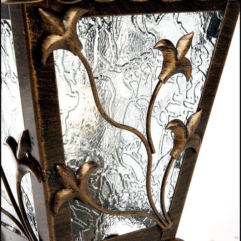 Конструктивно светильник представлен в форме четырехгранника, размерами 224*224*480 мм, что делает его компактным, но вместе с тем достаточно заметным элементом. Прочный материал из металла и стекла защищен от коррозии и может беспрепятственно эксплуатироваться в любых погодных условиях благодаря степени защиты IP44. Этот светильник идеально подойдет для освещения дачного участка, сада или придомовой территории, добавляя благородные акценты в ландшафтный дизайн.