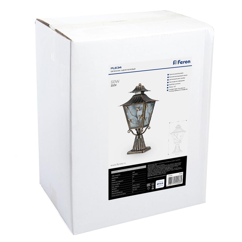 Светильник садово-парковый Feron PL634 на постамент 60W 230V E27 черное золото 11644 по цене 7 268 руб. с фотографией и техническими характеристиками. Для покупки товара нажмите кнопку "Купить" и перейдите в корзину или позвоните по телефону 8 (495) 585 32 60 или 8 (800) 222 23 53.