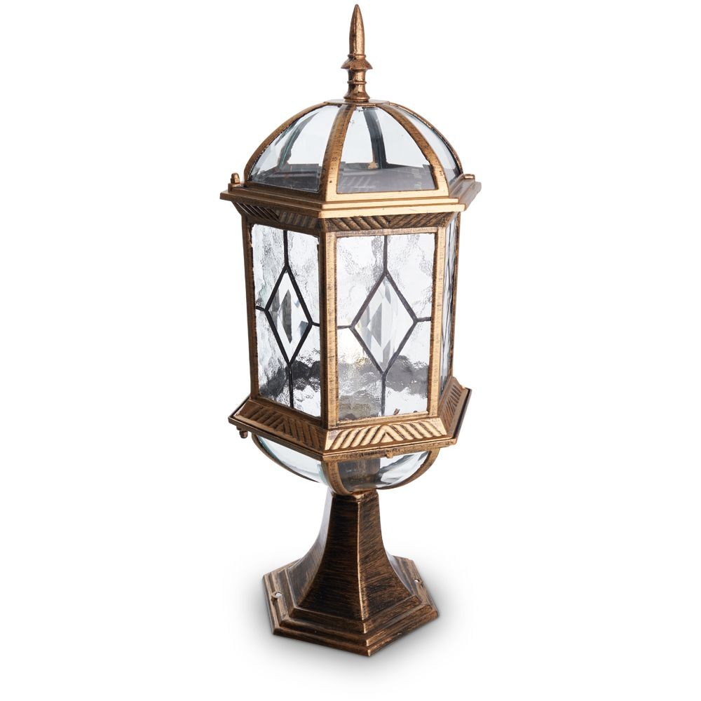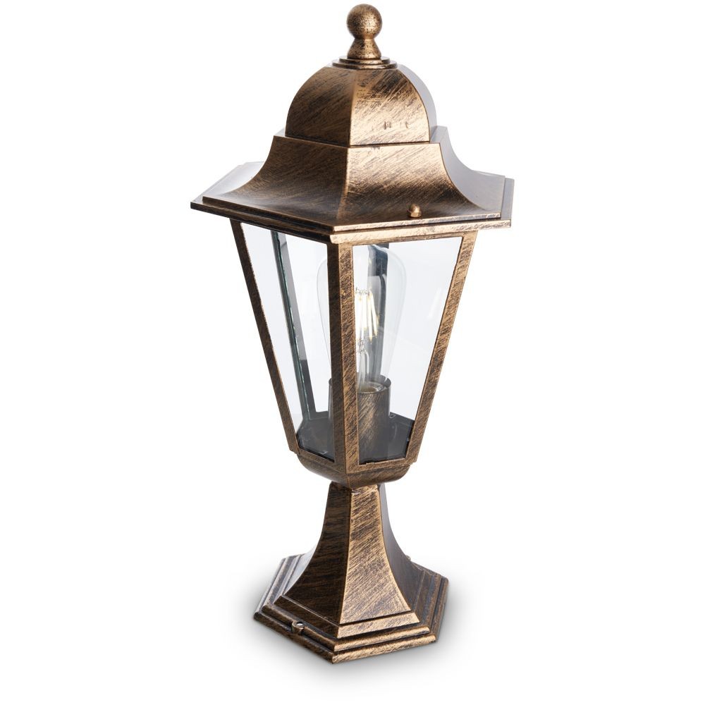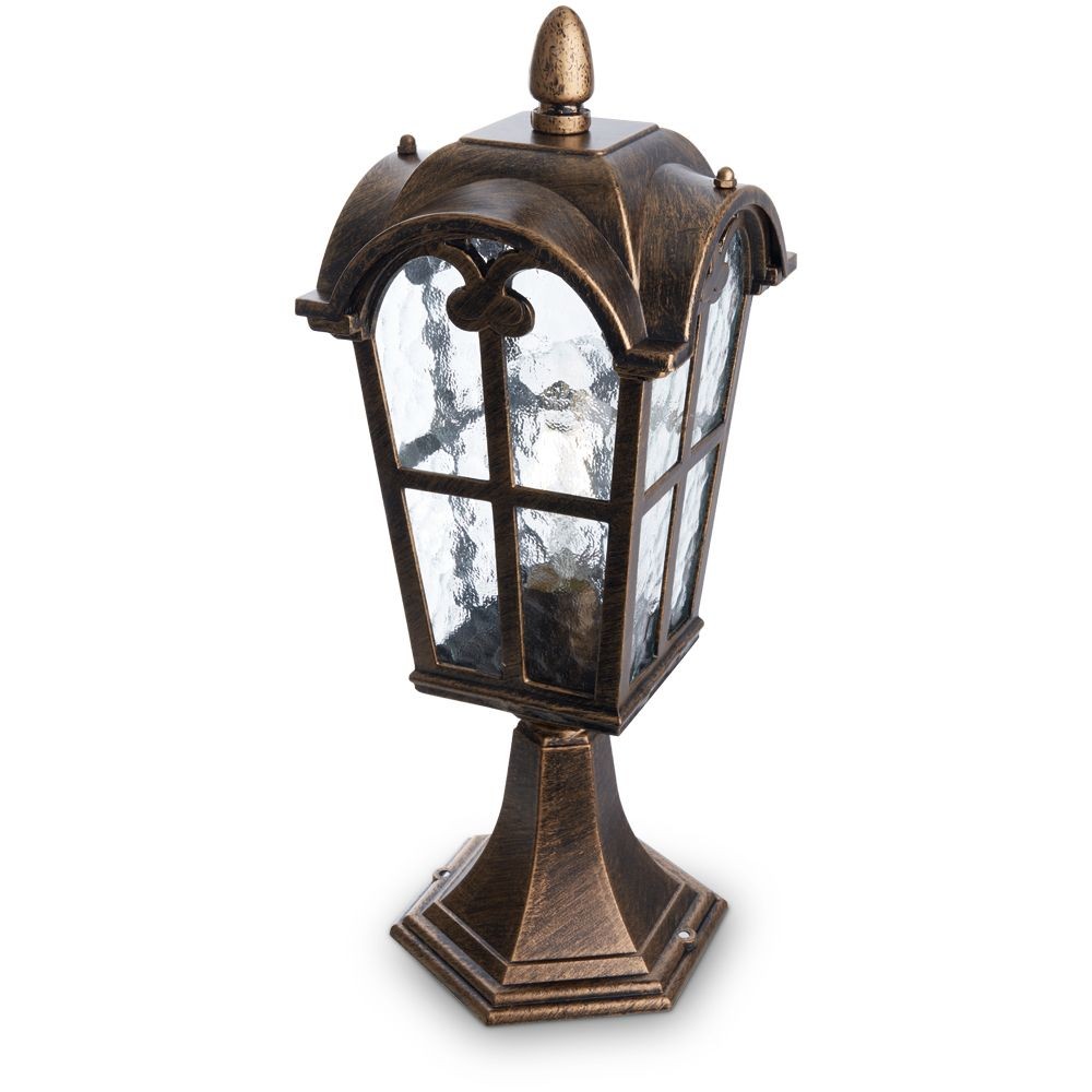 Стильный цвет «черное золото» придает светильнику особый шарм, делая его не только источником света, но и украшением ландшафта. Благодаря защите IP44, светильник без опасений можно использовать во внешних условиях, где он будет надежно защищен от пыли и брызг воды.