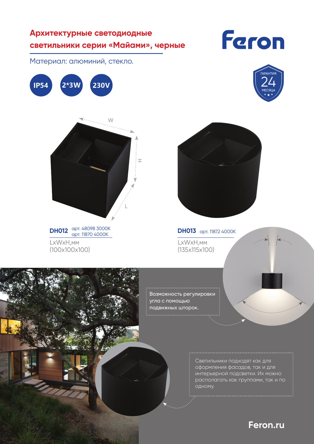 Светильник уличный светодиодный Feron DH012 2*3W 450Lm 3000K черный 48098 по цене 1 729 руб. с фотографией и техническими характеристиками. Для покупки товара нажмите кнопку "Купить" и перейдите в корзину или позвоните по телефону 8 (495) 585 32 60 или 8 (800) 222 23 53.