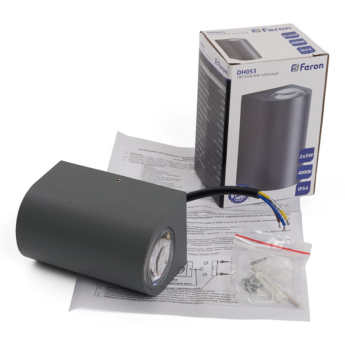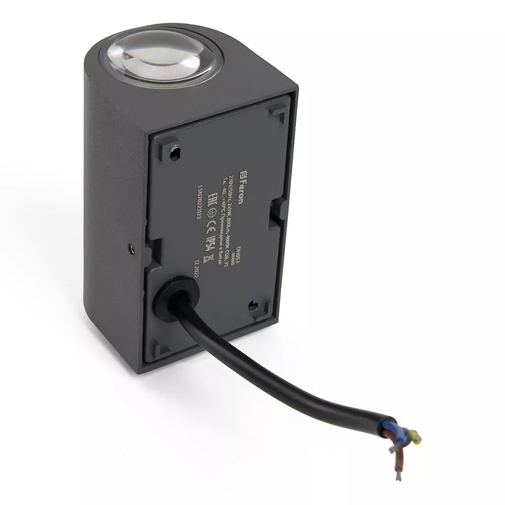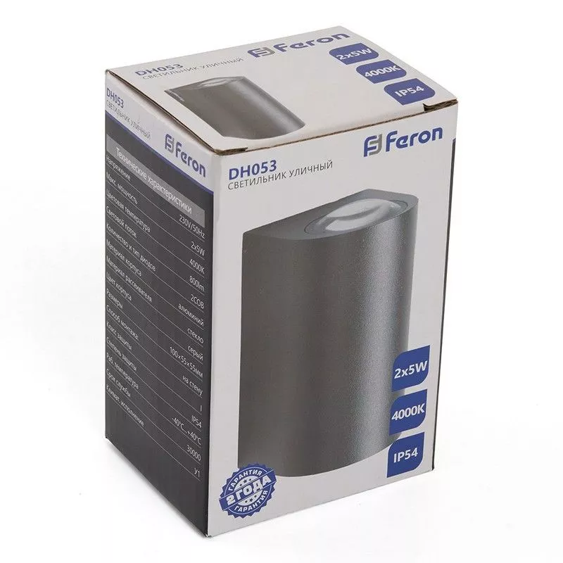Мощность 2*5W обеспечивает яркость в 800 Лм с нейтральным белым светом 4000K, который создает комфортную атмосферу. Защита IP54 гарантирует надежность в эксплуатации даже при неблагоприятных погодных условиях. Светильник работает в диапазоне температур от -40°C до +40°C, что делает его подходящим для любого региона. Монтируется на стену и обладает классом защиты 1, что обеспечивает безопасность при использовании. Выберите Feron DH053 для эффективного и эстетичного уличного освещения.