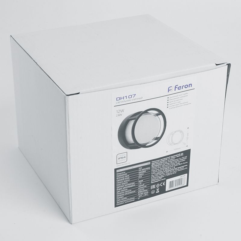 Светильник для уличного освещения. Сделан из металла и стекла, не подвержен коррозии, можно использовать на любых открытых площадках, дачном участке, доме, и других местах. Садово-парковые светильники серии Мельбурн от Feron в цвете Черный с типом цоколя Встроенный светодиод (LED) идеально подойдут для освещения Вашего загородного участка, дачи или дома. Светильник уличный светодиодный, на стену (ДБУ) FERON DH107, серия Мельбурн, 12W, 4000К (белый натуральный), 175-265V/50Гц, 720Lm, IP54, 60LED*SMD2835, класс защиты 1, раб.t -40°C...+40°C, цвет черный, корпус алюминий, 160*160*120мм,