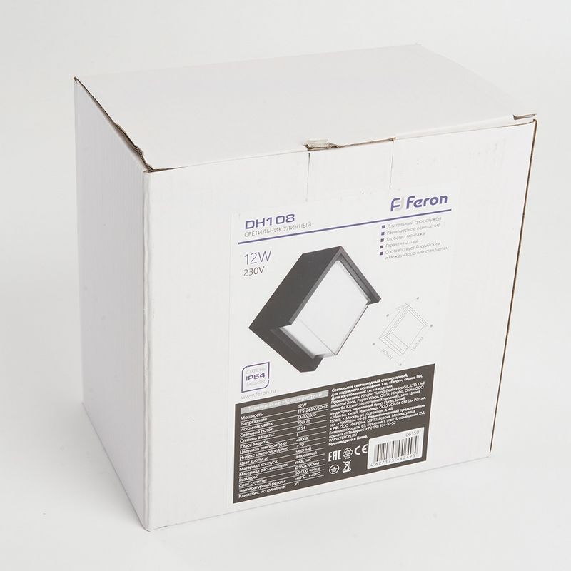 Светильник для уличного освещения. Сделан из металла и стекла, не подвержен коррозии, можно использовать на любых открытых площадках, дачном участке, доме, и других местах. Садово-парковые светильники серии Мельбурн от Feron в цвете Черный с типом цоколя Встроенный светодиод (LED) идеально подойдут для освещения Вашего загородного участка, дачи или дома. Светильник уличный светодиодный, на стену (ДБУ) FERON DH108, серия Мельбурн, 12W, 4000К (белый натуральный), 175-265V/50Гц, 720Lm, IP54, 60LED*SMD2835, класс защиты 1, раб.t -40°C...+40°C, цвет черный, корпус алюминий, 160*100*160мм,
