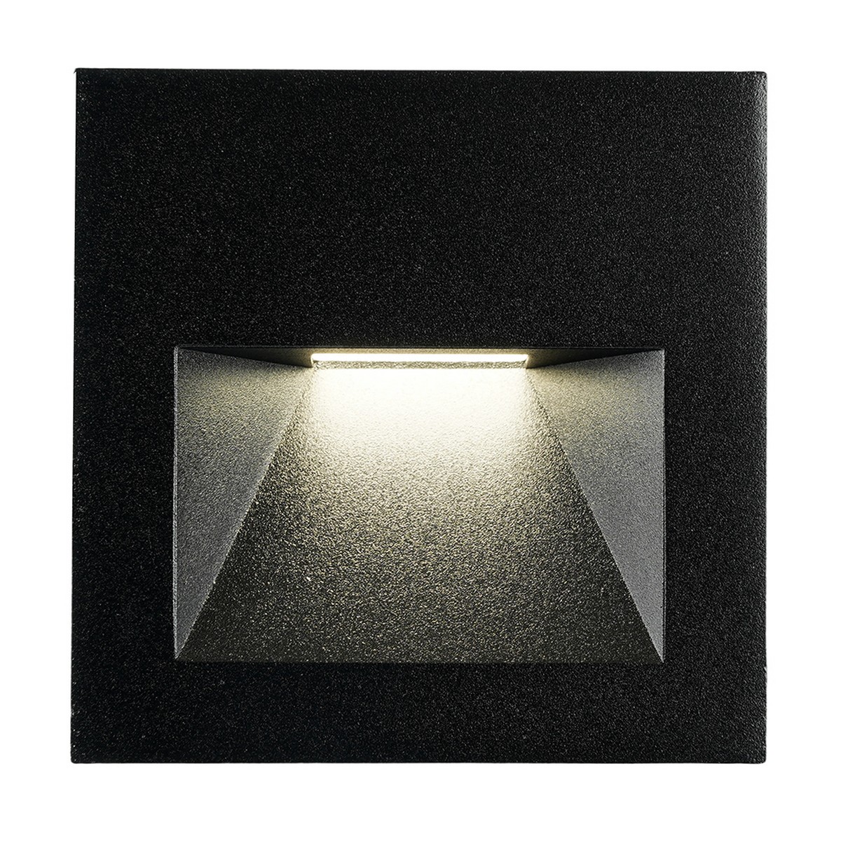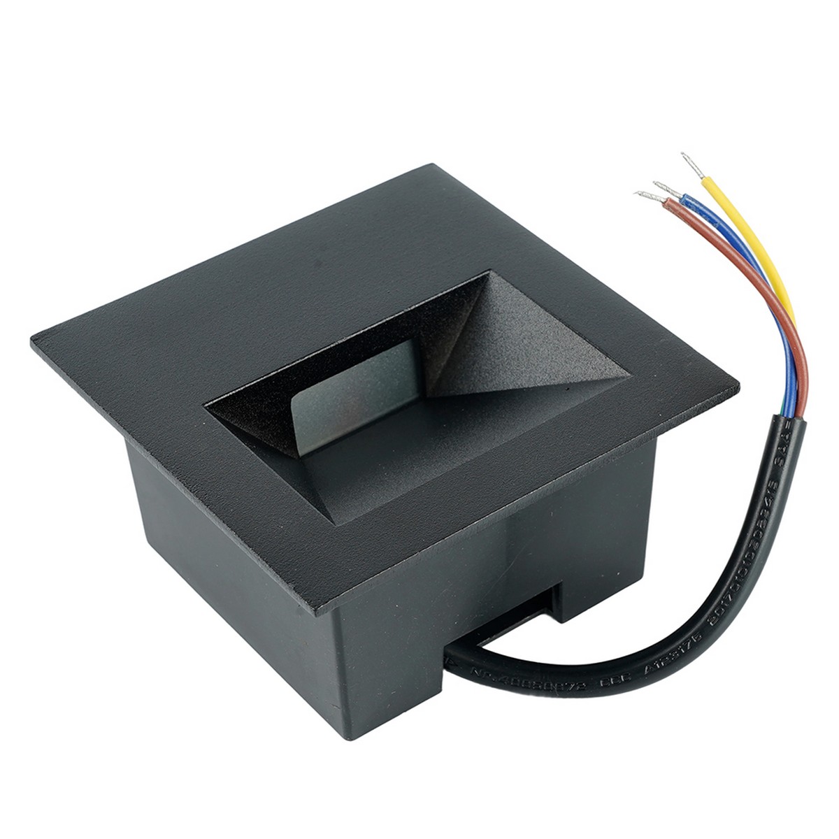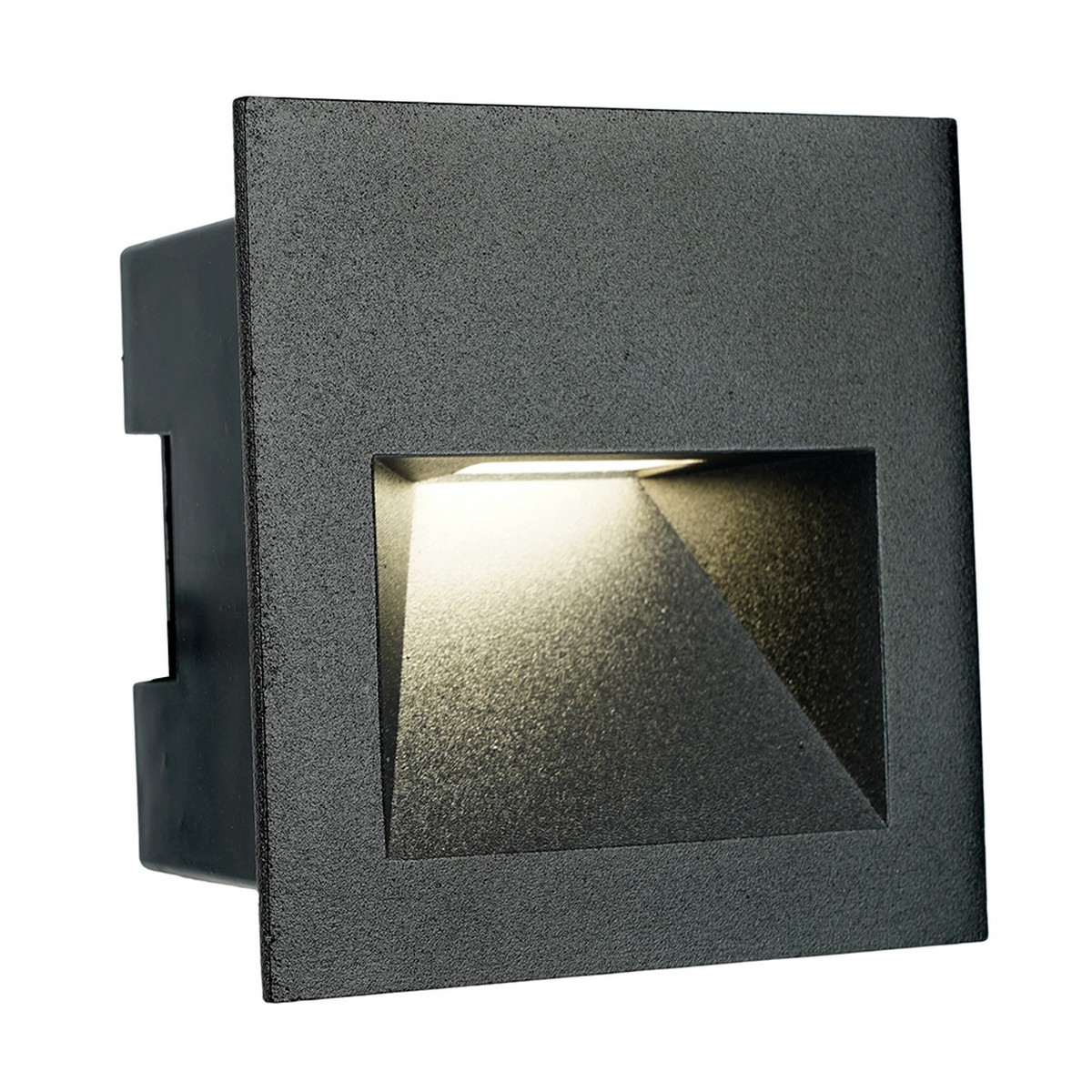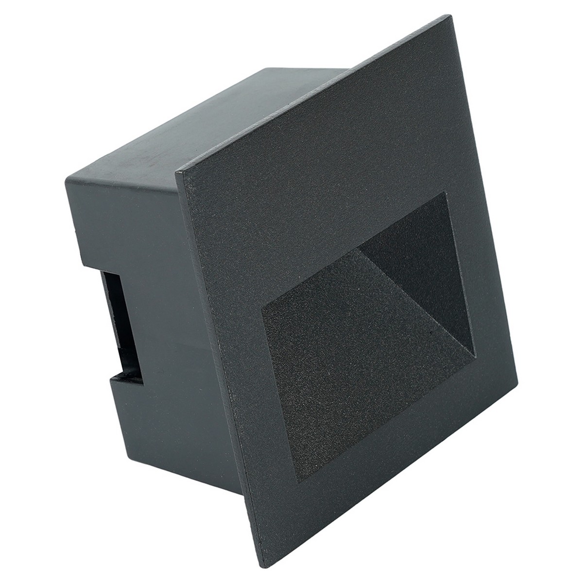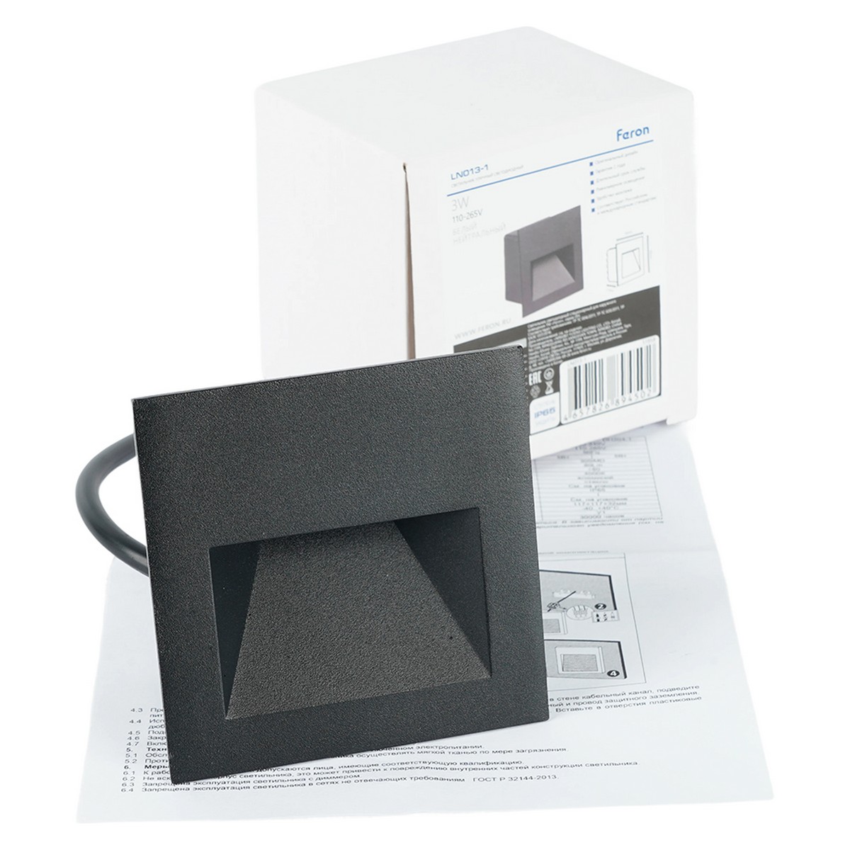 Светильник встраиваемый светодиодный, для лестничной подсветки (ДВУ) FERON LN013-1, 3W 4000К (белый натуральный), 110-265V, 80Lm, IP65, цвет черный, корпус алюминий, пластик, рассеиватель стекло, 86*86*63 мм, монтажн.отв. 68*68 мм.