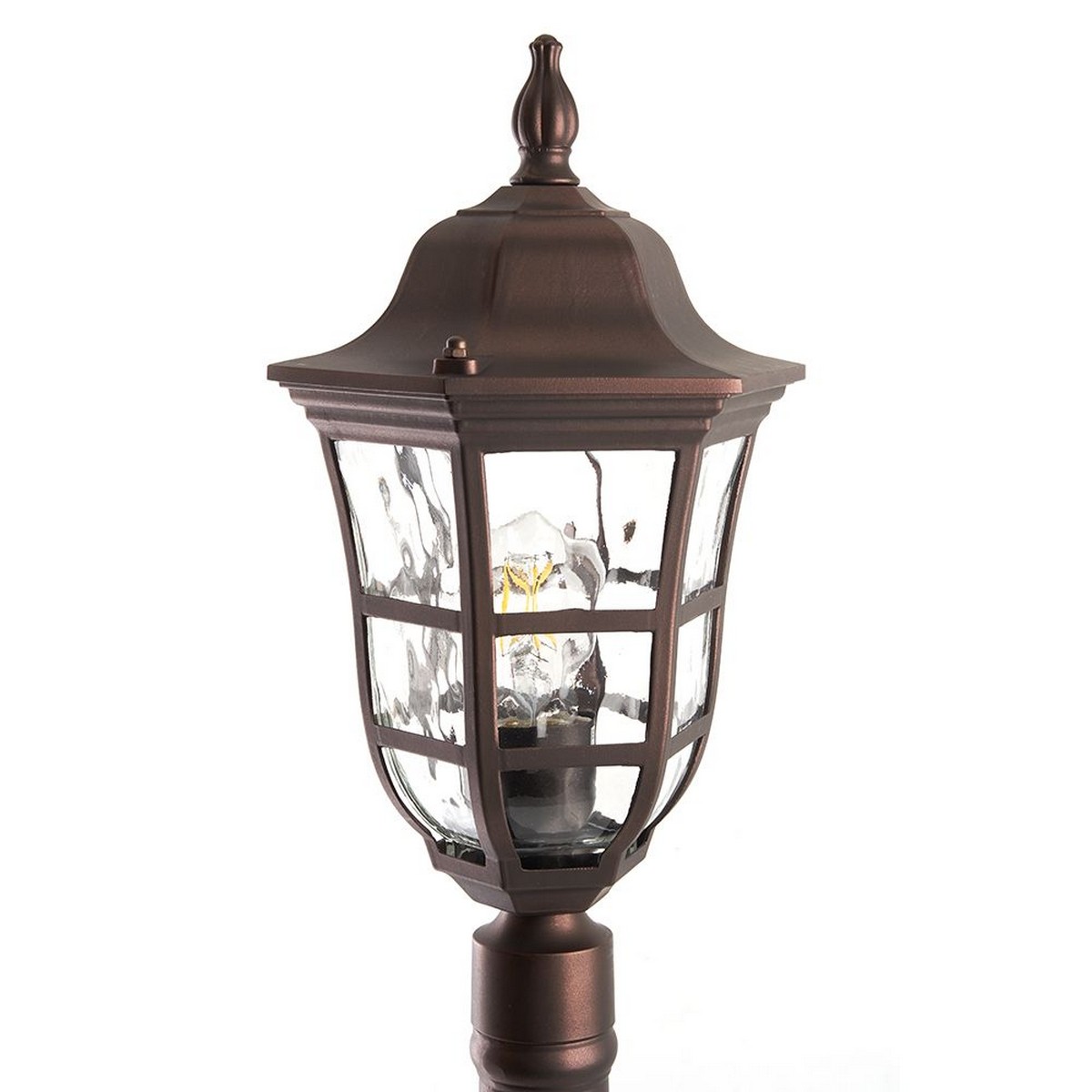 Основной цвет корпуса - коричневый, что позволяет ему гармонично вписаться в любой ландшафтный дизайн, будь то дачный участок или сад при частном доме. Высота светильника составляет 1080 мм, что делает его заметным элементом декора, одновременно выполняющим практическую функцию освещения.