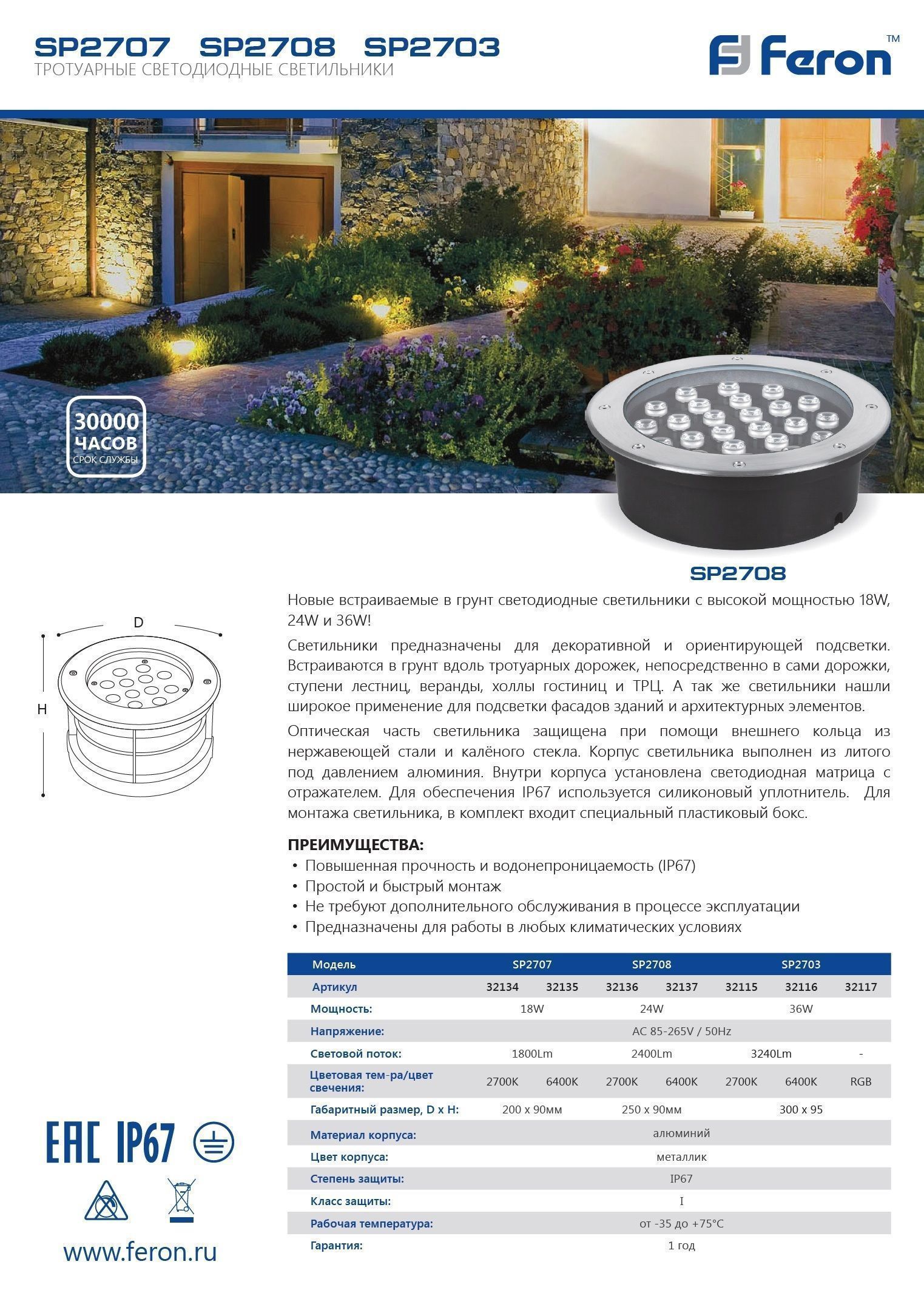 Ландшафтный светильник Feron SP2707 - идеальное решение для уличного освещения, созданное для надежной эксплуатации в любых погодных условиях. С мощностью 18 Вт и напряжением 12V, он обеспечивает яркое и комфортное теплое белое освещение (2700K), создавая атмосферу уюта и безопасности на ваших площадках и тротуарах. Корпус из анодированного алюминия с защитой IP67 гарантирует полную влагозащиту, позволяя устанавливать светильник на улице без желания волноваться о воздействии влаги. Компактные размеры (200*200*90 мм) и элегантный серебристый цвет позволяют гармонично вписать его в любой ландшафт, а угол рассеивания света в 24° обеспечивает эффективное освещение целевых объектов. С 1800 люменами светового потока, этот светильник станет надежным и энергосберегающим выбором для создания красивых и безопасных пространств на вашем участке.