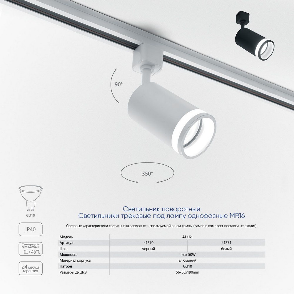 Светильник Feron AL161 трековый однофазный на шинопровод под лампу GU10 черный 41370 по цене 394 руб. с фотографией и техническими характеристиками. Для покупки товара нажмите кнопку "Купить" и перейдите в корзину или позвоните по телефону 8 (495) 585 32 60 или 8 (800) 222 23 53.