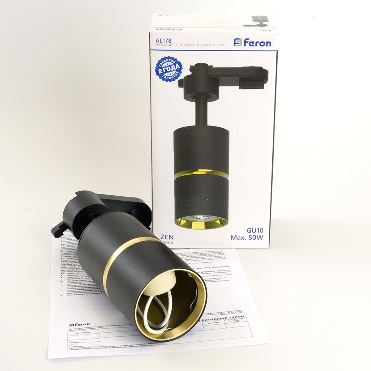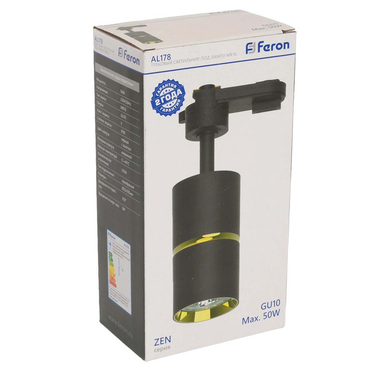 Светильник Feron AL178 трековый под лампу GU10 черный золото 48703 по цене 595 руб. с фотографией и техническими характеристиками. Для покупки товара нажмите кнопку "Купить" и перейдите в корзину или позвоните по телефону 8 (495) 585 32 60 или 8 (800) 222 23 53.