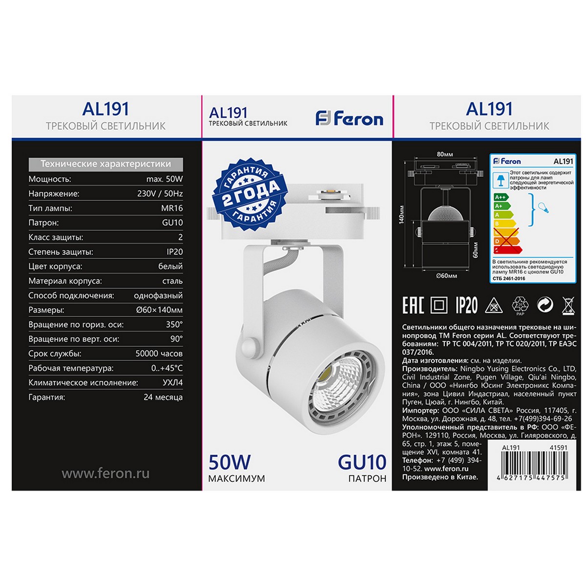 Светильник Feron AL191 трековый однофазный на шинопровод под лампу GU10 белый 41591 по цене 293 руб. с фотографией и техническими характеристиками. Для покупки товара нажмите кнопку "Купить" и перейдите в корзину или позвоните по телефону 8 (495) 585 32 60 или 8 (800) 222 23 53.