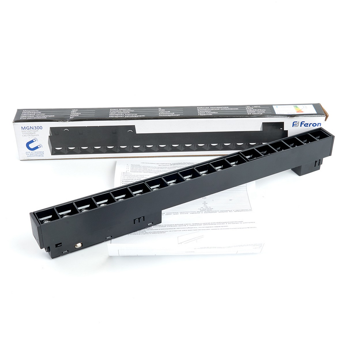 Светильник светодиодный Feron MGN300 представляет собой современное решение для трекового освещения, обеспечивая высокую гибкость и функциональность. Артикул 41931 включает магнитную систему, позволяющую легко перемещать светильник по шинопроводу, создавая именно то освещение, которое вам нужно. Мощность 18W и нейтральная температура света 4000K делают его подходящим как для основного, так и для декоративного освещения. Выходная яркость в 1620 лм гарантирует отличную видимость в любом интерьере. Корпус выполнен из прочного алюминия черного цвета, а рассеиватель из поликарбоната обеспечивает умеренное рассеивание света. Компактные размеры (328*22*43 мм) позволяют интегрировать MGN300 в различные пространства. Этот линейный светильник — отличный выбор для создания зонального освещения и акцентирования внимания на отдельных элементах интерьера.