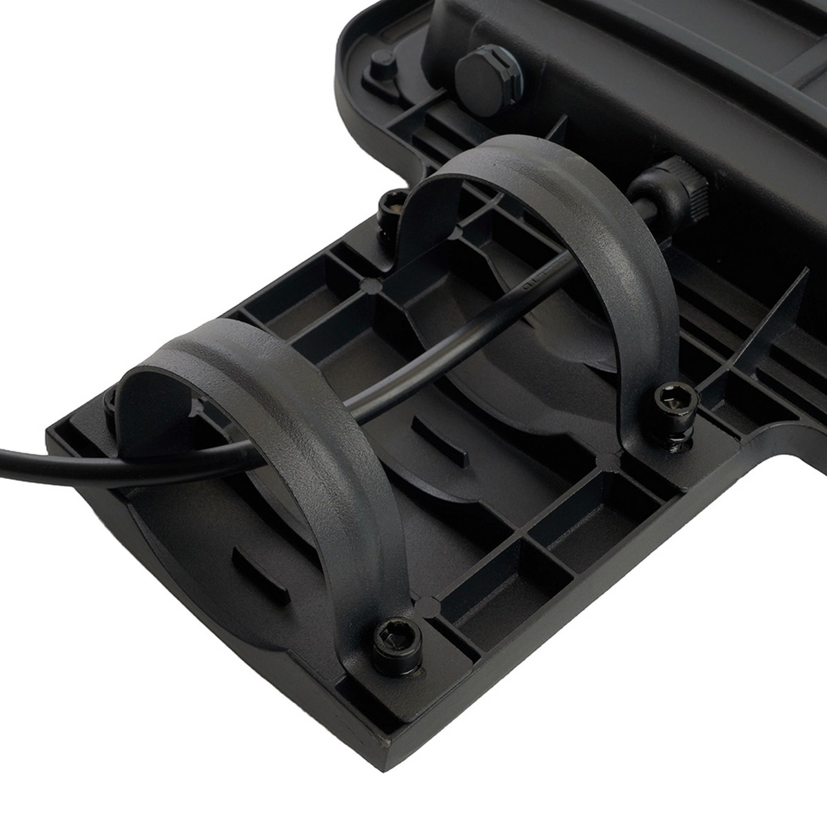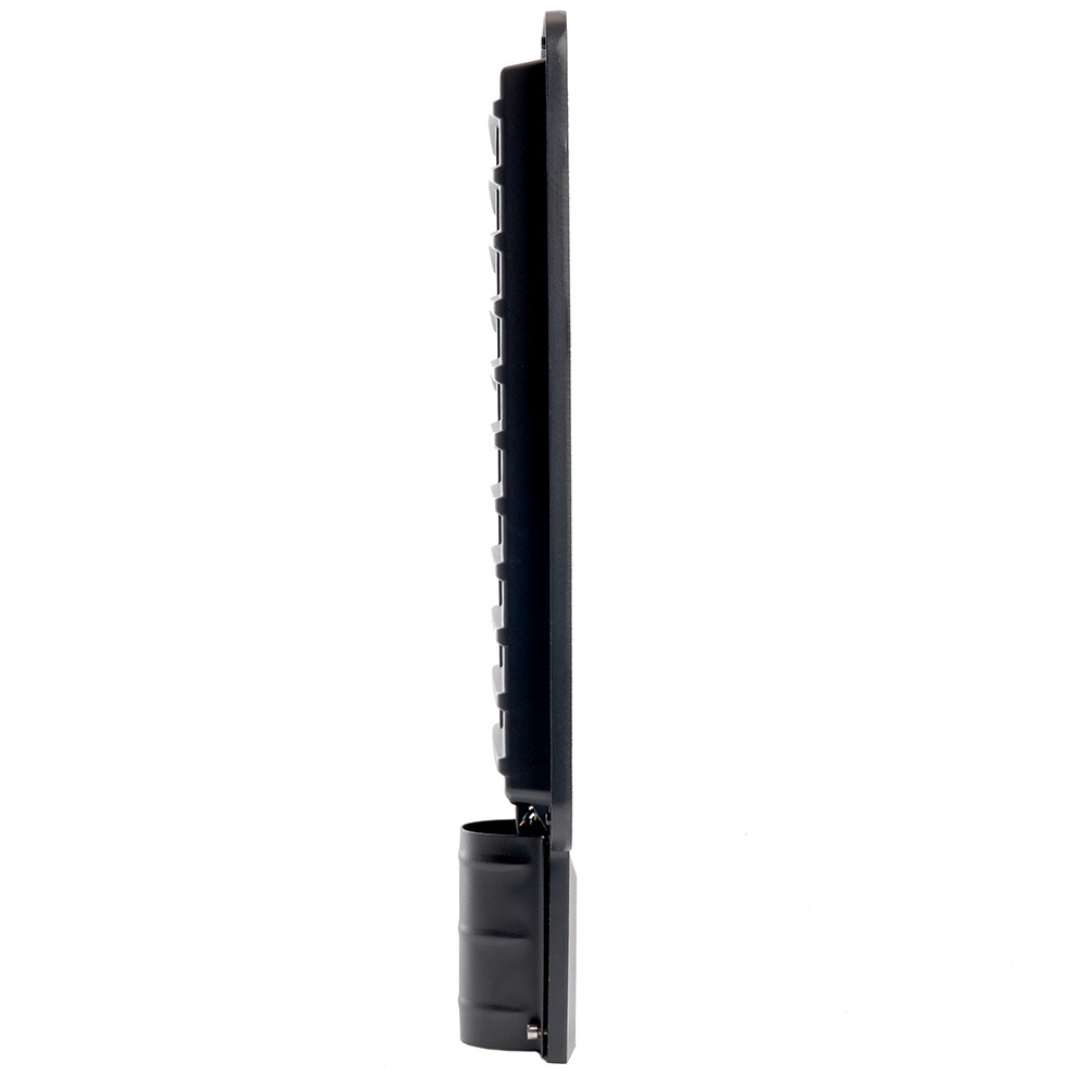 Продукт изготовлен из прочного алюминиевого корпуса с черным покрытием, что не только придает ему эстетичный вид, но и обеспечивает долговечность в условиях наружного использования. Защита по классу IP65 делает светильник устойчивым к пыли и влаге, что гарантирует его надежность и долгую службу. Конструкция предназначена для монтажа на столбы, что упрощает установку при планировании освещения на больших площадках.