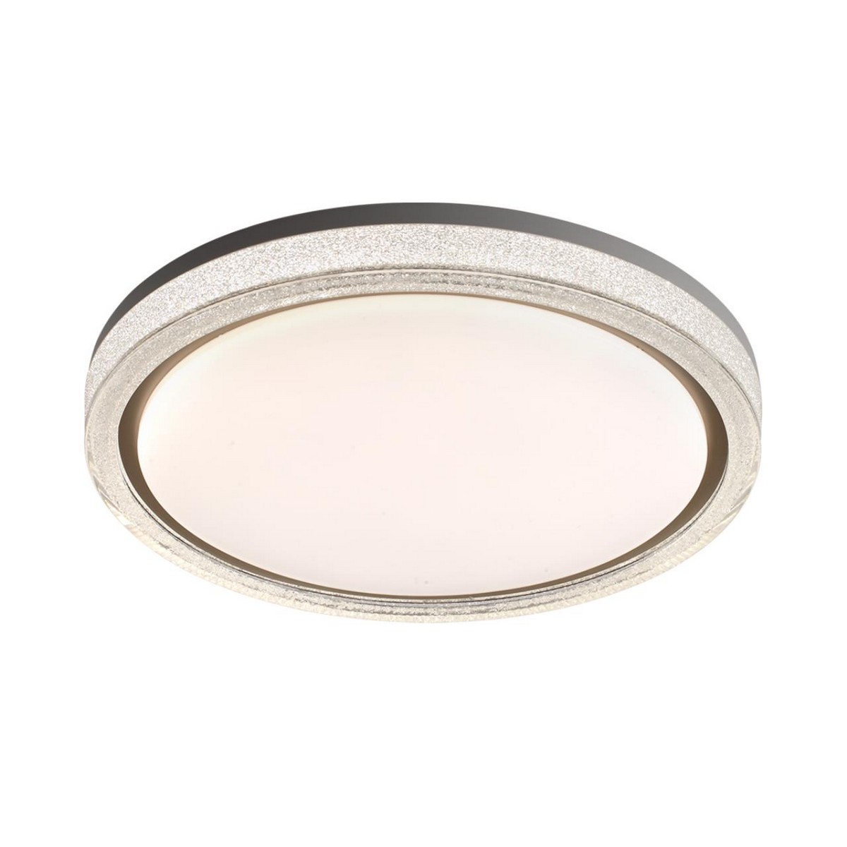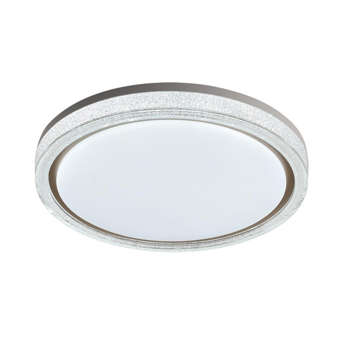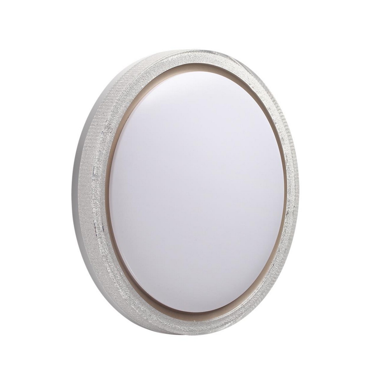 Светильник 7781/DL линии KRISTY состоит из металлического основания (базы) и пластикового рассеивателя. Материал рассеивателя - высококачественный пластик марки PMMA 2.0 белого цвета с матовой поверхностью, обеспечивающий светильнику равномерное рассеивание и хорошее светопропускание. Форма плафона круглая, декорирована прозрачным акриловым ободом, внутренняя часть которого покрыта акриловой крошкой, которая добавляет блеска и игры света на его поверхности, а также кантом золотистого цвета. Степень защиты IP43 позволяет использовать светильник в определенных зонах влажных помещений. В комплект входит заменяемый LED модуль с линзами, мощностью 48Вт, которая соответствует лампе накаливания 440Вт. А также пульт ДУ, с помощью которого осуществляется плавное изменение цветовой температуры 3000-6000К, изменение яркости, переход в режим переключения теплого/белого/холодного/ночного света. Светильник имеет функцию "память".