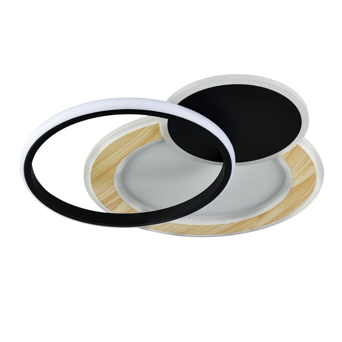 Модель линии PINE характеризуется тремя контурами освещения и сочетанием трех базовых цветов – белого, черного и цветом натурального дерева. Благодаря данному дизайну светильник является прекрасным элементом дизайна интерьера не только во включенном, но и в выключенном виде. Три контура жестко зафиксированы между собой. Светильник оснащен пультом ДУ.