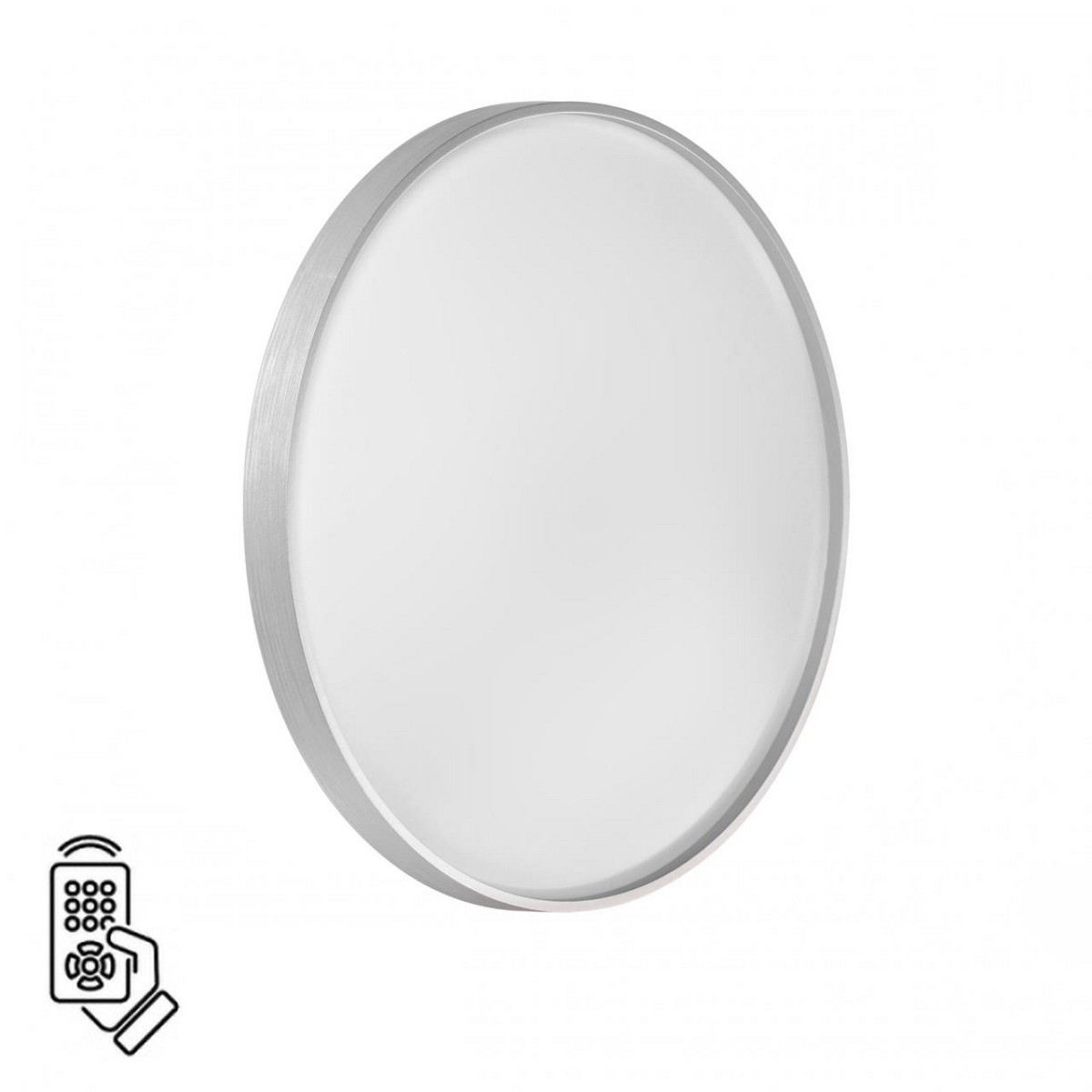 Светильник 7675/DL линии AGAP состоит из металлического основания (базы) и пластикового рассеивателя. Материал рассеивателя - высококачественный пластик марки PMMA 2.0 белого цвета с матовой поверхностью и рельефной структурой. Пластик обеспечивает светильнику равномерное рассеивание и хорошее светопропускание. Форма плафона: круглая, декорирована центральной вставкой из пластика, цвет серебро. Степень защиты IP43 позволяет использовать светильник в определенных зонах влажных помещений. В комплект входит заменяемый LED модуль с линзами, мощностью 48Вт, которая соответствует лампе накаливания 440Вт. А также пульт ДУ (с креплением на стену), с помощью которого осуществляется плавное изменение цветовой температуры 3000-6000К, изменение яркости, переход в режим переключения теплого/белого/холодного/ночного света. Светильник имеет функцию "память".