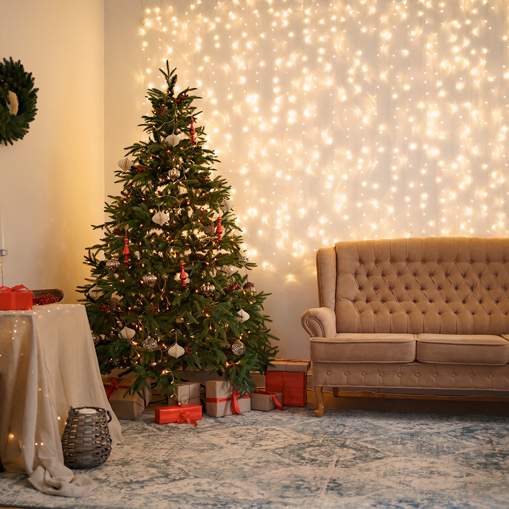 Гирлянда линейная FERON CL02, 20LED, 2700К (теплый белый), настраивается контроллером, 2м+1,5м зеленый шнур, расстояние между светодиодами 10см, IP20, 1,2W, от сети 230V, контроллер в комплекте, последовательное подключение - НЕТ