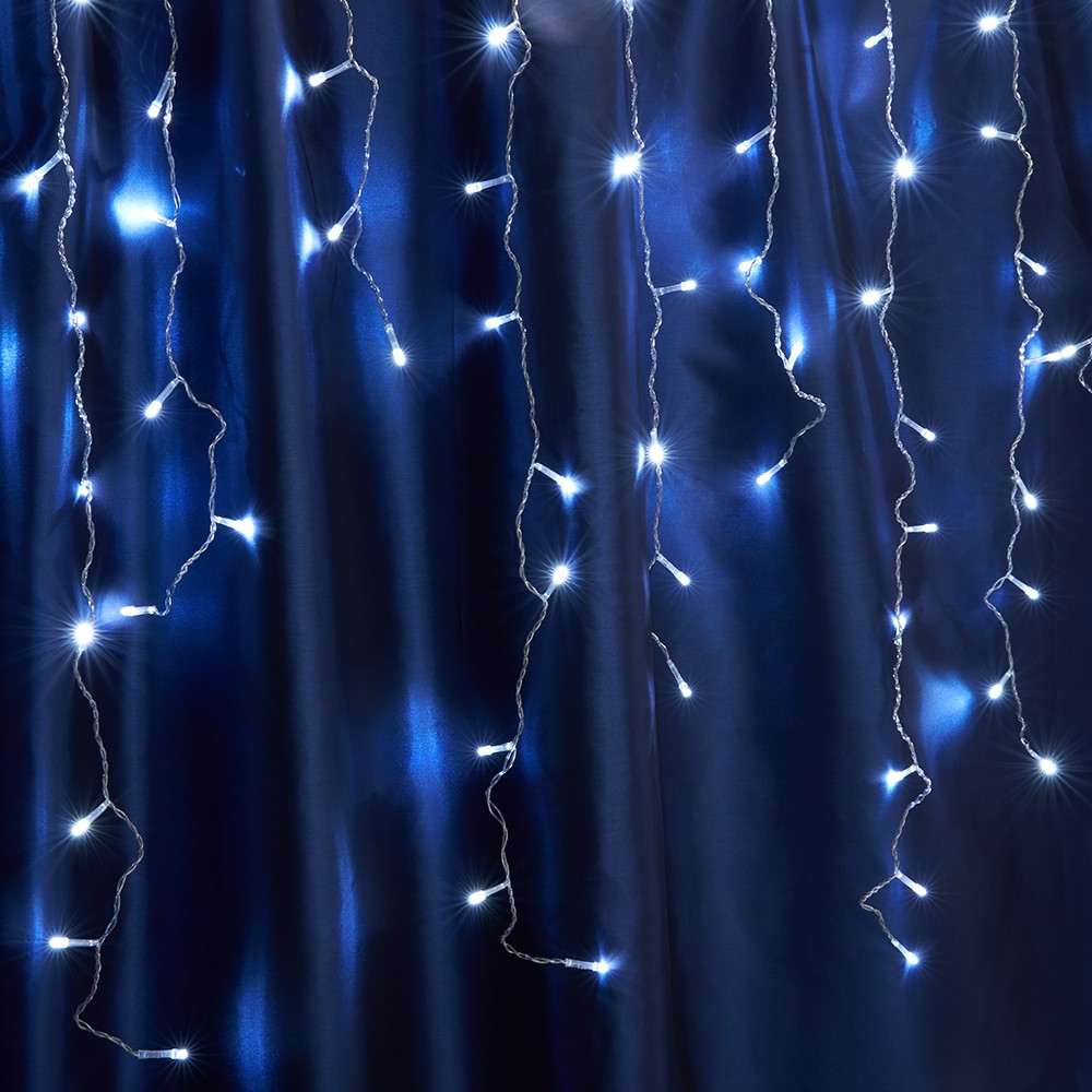 Гирлянда дождь FERON CL23, 240LED, (синий), статичная (постоянного свечения), 5,3м+3м прозрачный шнур, расстояние между светодиодами 10см, IP44, 12W, от сети 230V, последовательное подключение до 5 гирлянд
