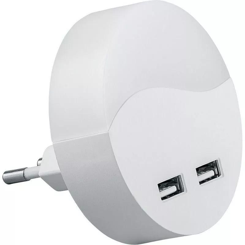 Светильник-ночник c USB выходами 0,5W 230V круг, белый FN1122