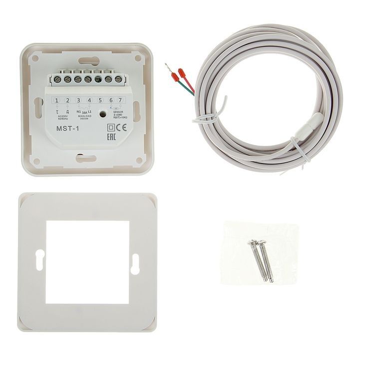 Терморегулятор Grand Meyer MST-1 - стандартный механический терморегулятор с выносным датчиком. Есть индикация включения теплого пола, удобная кнопка включения. Датчик терморегулятора в комплекте