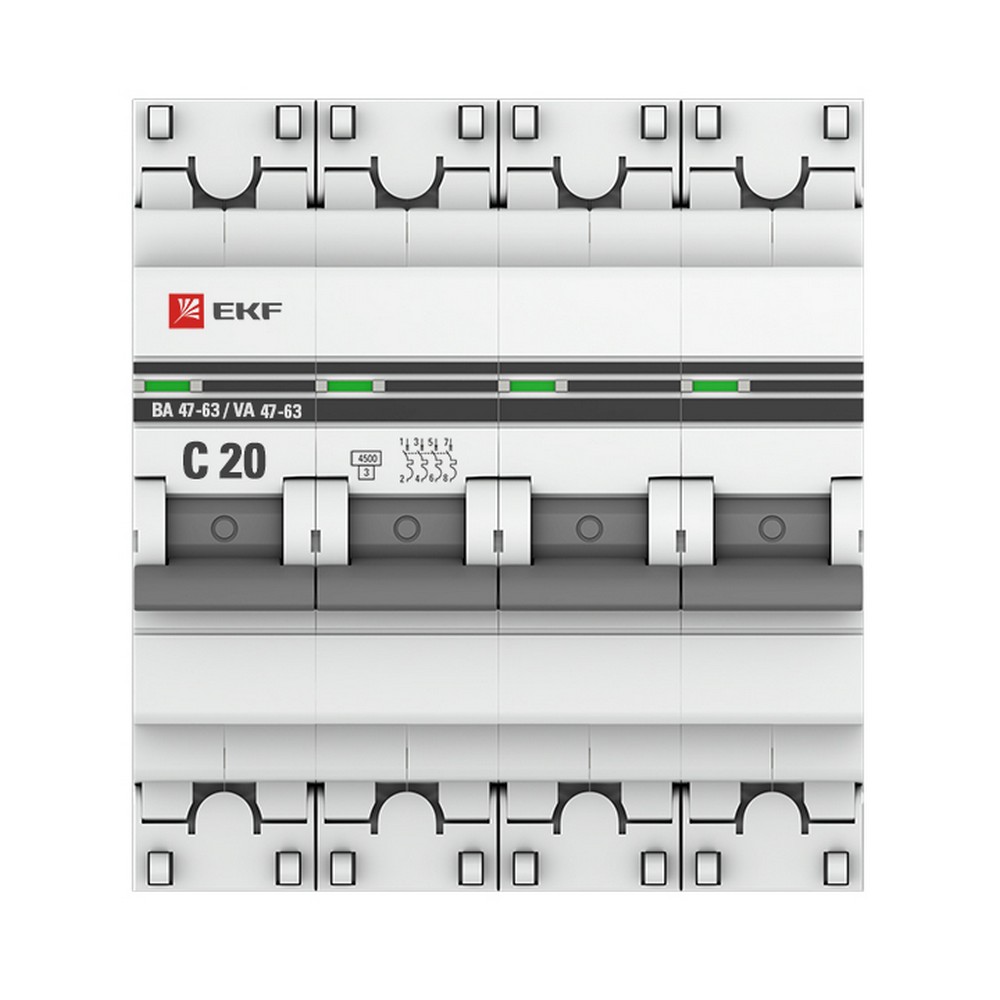 Автоматический выключатель EKF PROxima ВА 47-63 4P 20А (С) 4,5kA mcb4763-4-20C-pro по цене 858 руб. с фотографией и техническими характеристиками. Для покупки товара нажмите кнопку "Купить" и перейдите в корзину или позвоните по телефону 8 (495) 585 32 60 или 8 (800) 222 23 53.