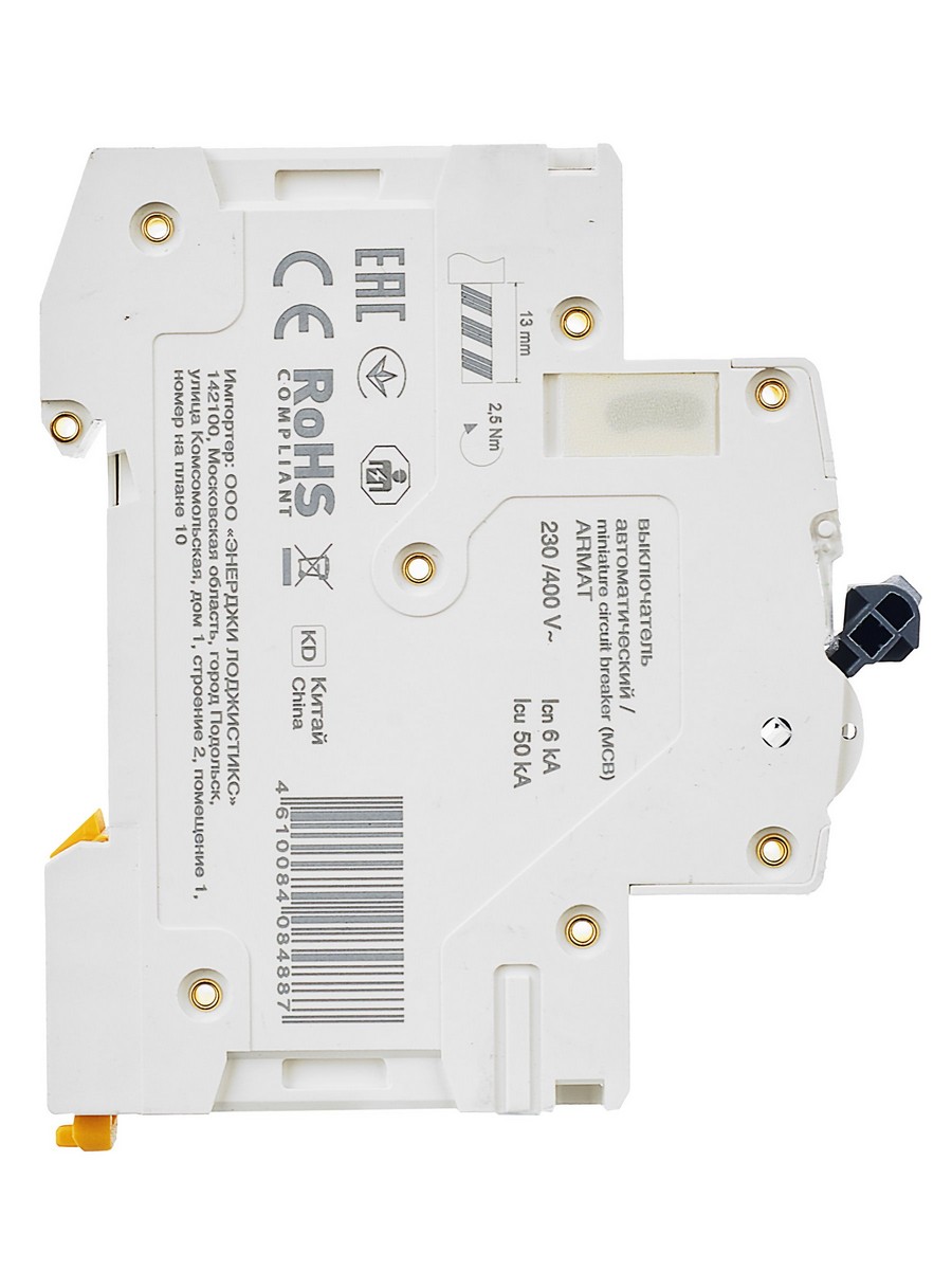 - Высокая отключающая способность 6 кА обеспечивает надежную защиту.