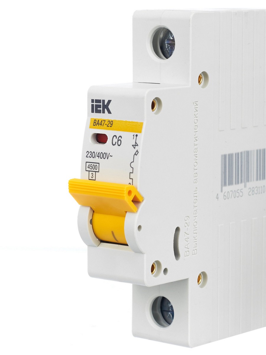 **Автоматический выключатель IEK KARAT ВА47-29 1Р 6А 4,5кА х-ка С (арт. MVA20-1-006-C)**