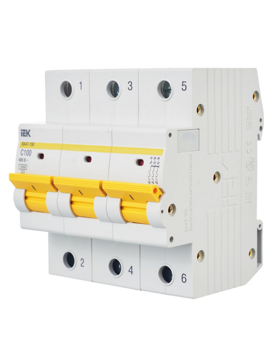 Автоматический выключатель IEK KARAT ВА47-150 3Р 100А 15кА х-ка C MVA50-3-100-C по цене 5 564 руб. с фотографией и техническими характеристиками. Для покупки товара нажмите кнопку "Купить" и перейдите в корзину или позвоните по телефону 8 (495) 585 32 60 или 8 (800) 222 23 53.