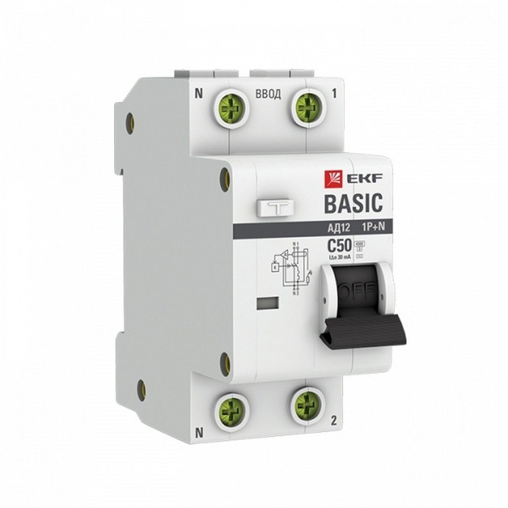 Диф. автомат EKF Basic АД-12 (C) 1P+N 50A 30mA тип АС — это комбинированное устройство, обеспечивающее защиту от токов утечки и перегрузок. Срабатывание происходит при утечке тока на землю или коротком замыкании, что гарантирует безопасность сети. Номинальный ток 50A, максимальный ток отключения 30mA. Идеально подходит для защиты бытовых и коммерческих электросетей.