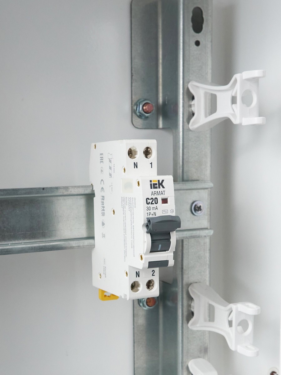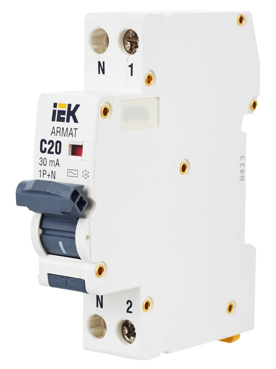 АВДТ Дифф. Автомат IEK ARMAT B06S 1P+NP C20 30мА тип AC (18мм) AR-B06S-1N-C20C030 – надежное решение для защиты электрических цепей. Этот автоматический выключатель дифференциального тока (АВДТ) предназначен для защиты от перегрузок, коротких замыканий и токов, замыкающих на землю. Модель ARMAT B06S имеет два полюса и номинальный ток 20 А, что позволяет эффективно использовать его в разнообразных электрических установках. Срабатывание по типу AC и номинальным дифференциальным током отключения 30 мА обеспечивает защиту человека от возможных электрических поражений. Номинальная отключающая способность 6 кА гарантирует высокую надежность в случае аварийных ситуаций. Артикул: AR-B06S-1N-C20C030. Идеально подходит для установки в распределительных щитах и обеспечивает безопасность вашего электрооборудования.