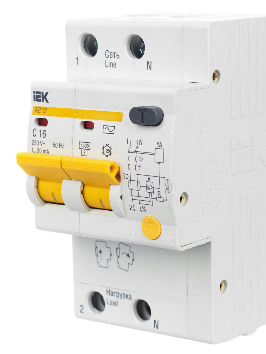 **Дифференциальный автоматический выключатель IEK KARAT АД12 2Р 16А 30мА (Артикул: MAD10-2-016-C-030)**