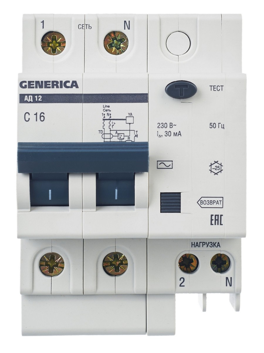 - **Тип:** 2-полюсный дифференциальный автомат