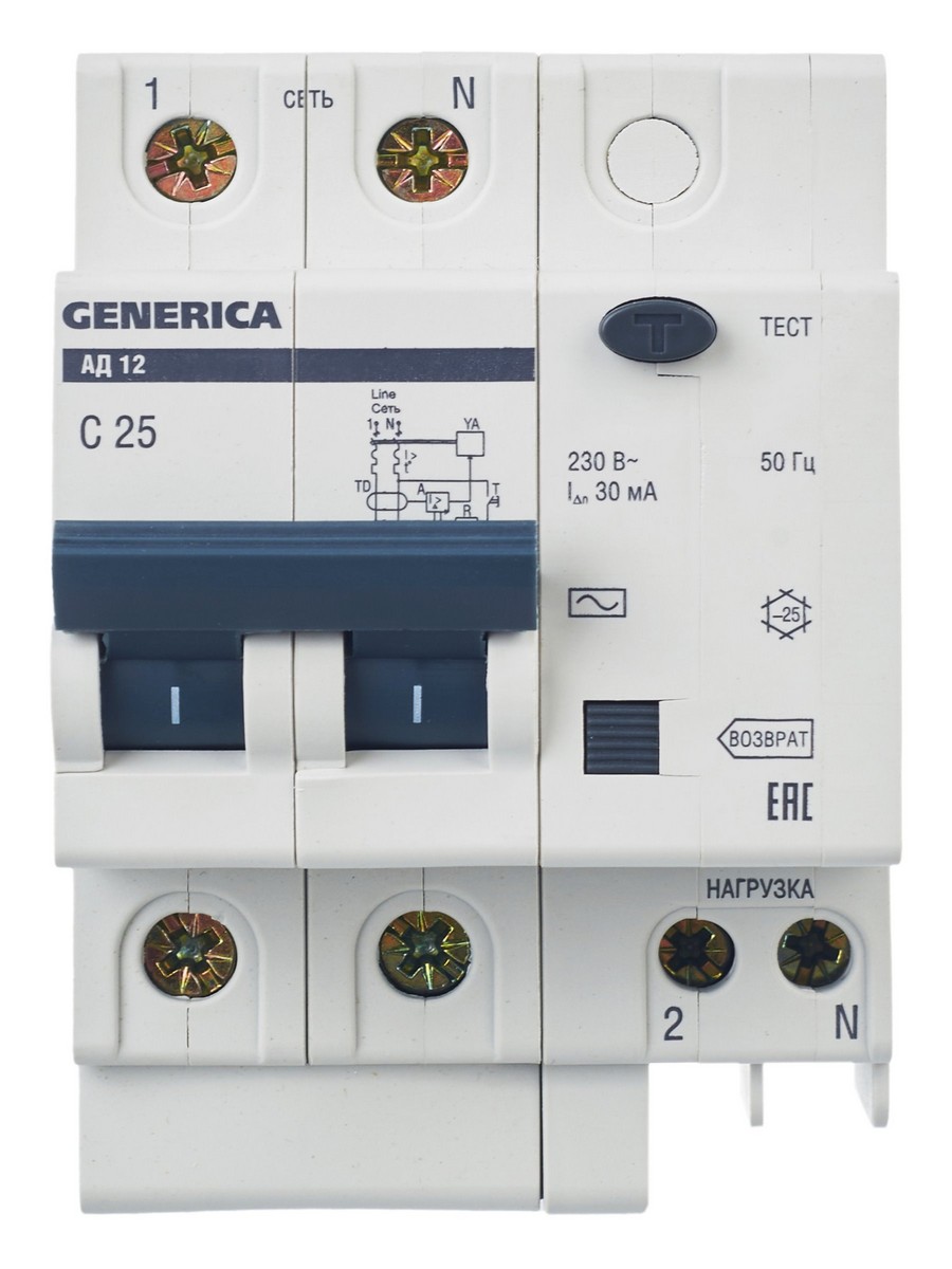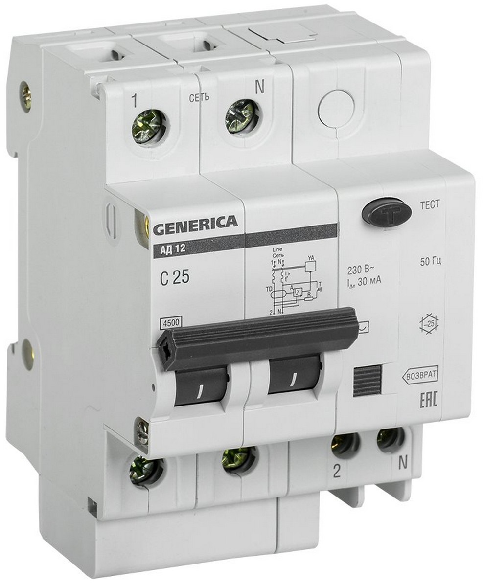 Дифференциальный автоматический выключатель IEK GENERICA АД12 2Р 25A 30мА MAD15-2-025-C-030 по цене 557 руб. с фотографией и техническими характеристиками. Для покупки товара нажмите кнопку "Купить" и перейдите в корзину или позвоните по телефону 8 (495) 585 32 60 или 8 (800) 222 23 53.