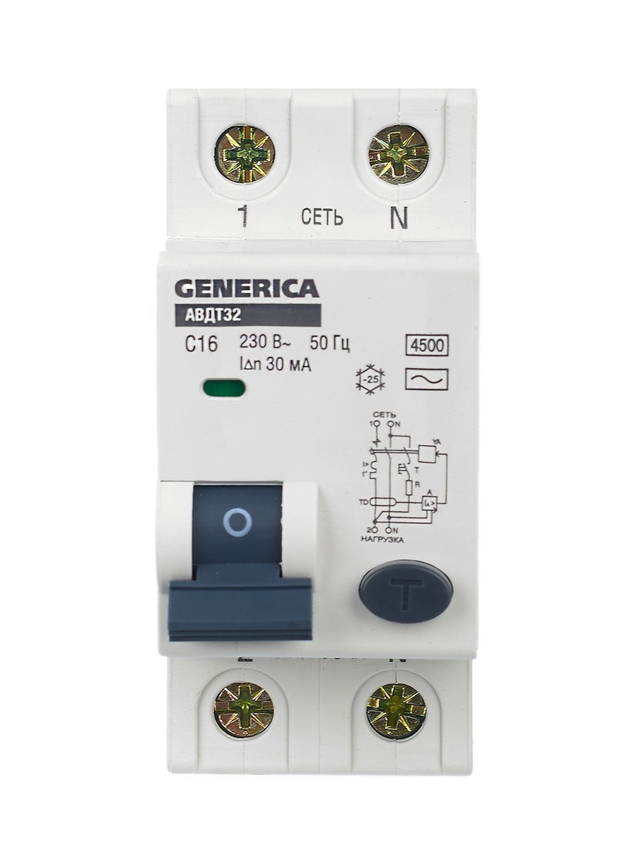 **Дифференциальный автоматический выключатель IEK GENERICA АВДТ32 2Р 16A MAD25-5-016-C-30**