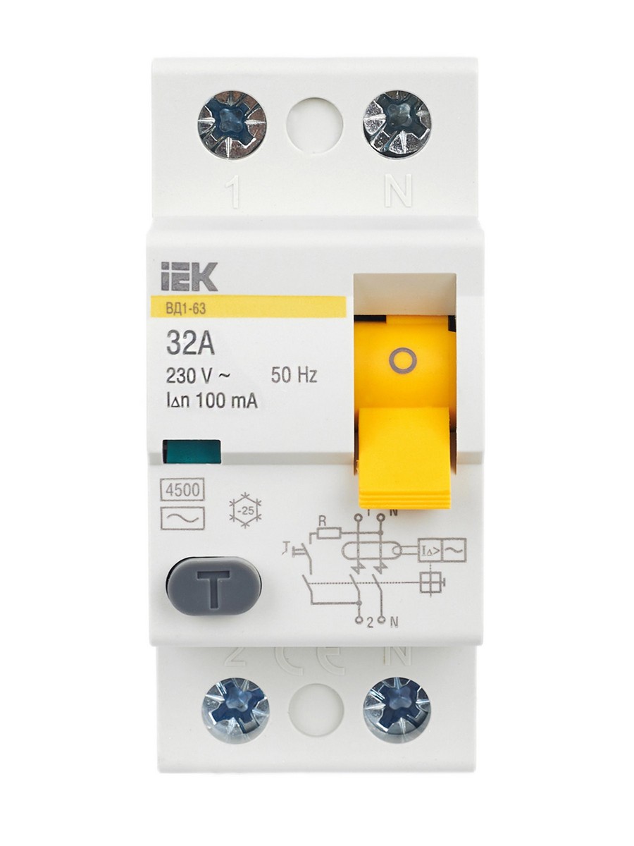 **Выключатель дифференциальный IEK KARAT ВД1-63 (УЗО) 2Р 32А 100мА MDV10-2-032-100**