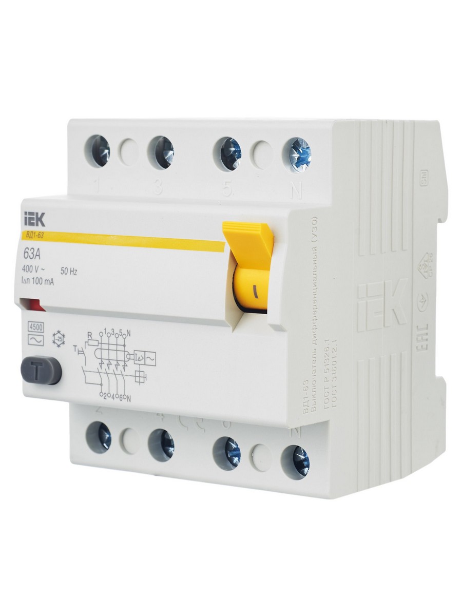 Выключатель дифференциальный IEK KARAT ВД1-63 (УЗО) 4Р 63А 100мА MDV10-4-063-100 по цене 2 720 руб. с фотографией и техническими характеристиками. Для покупки товара нажмите кнопку "Купить" и перейдите в корзину или позвоните по телефону 8 (495) 585 32 60 или 8 (800) 222 23 53.