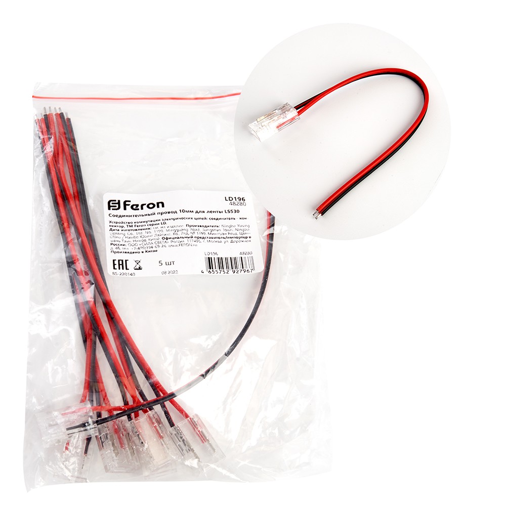 Соединительный провод 12мм для COB ленты LS530, LD196 (артикул 48280) от производителя Feron – надежное решение для подключения светодиодных лент шириной 10 мм. Обеспечивает стабильное соединение и надежную передачу энергии, что делает его идеальным выбором для создания освещения в интерьере, декорировании помещений и организации эффектного подсветки.